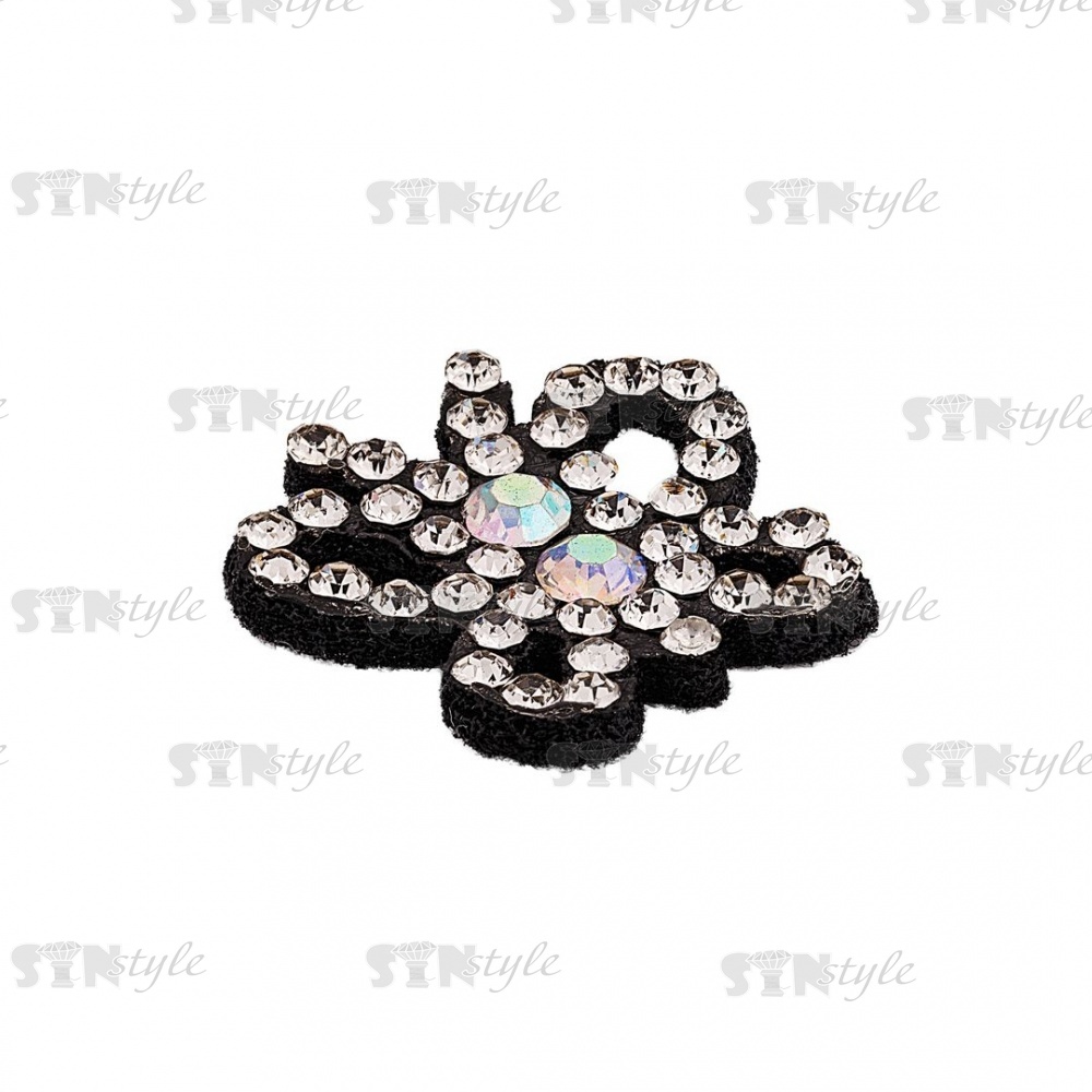 Аппликация "Бабочка" из страз, на фетровой основе, размер 20 мм х 20 мм, цвет черный + белые и радужные стразы