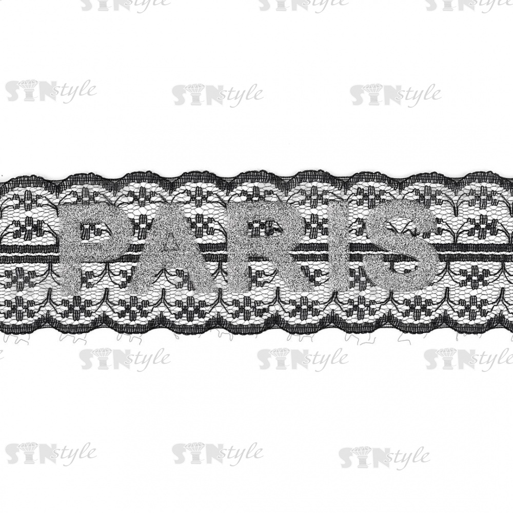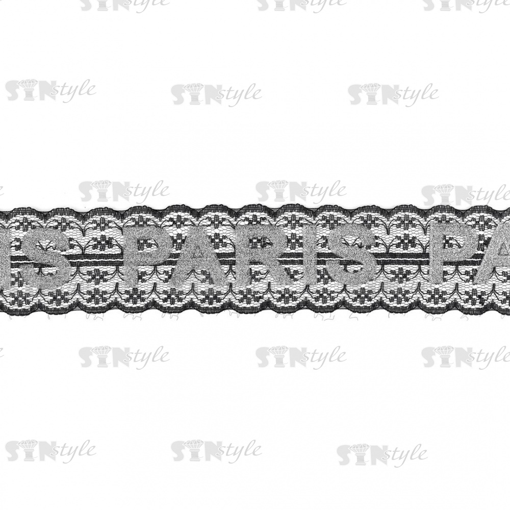 Кружево на сетке, черного цвета с надписью цвета серебра, ширина 45 мм, намотка 50 ярдов-365 элем