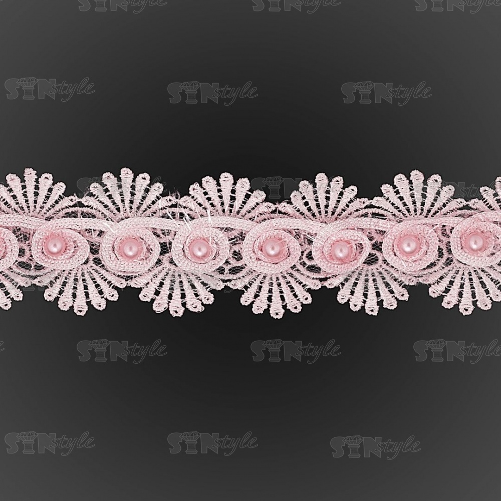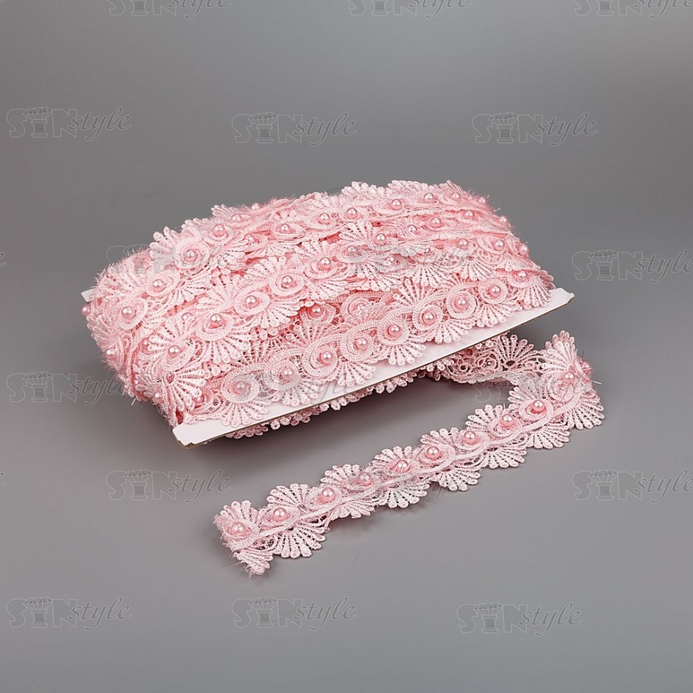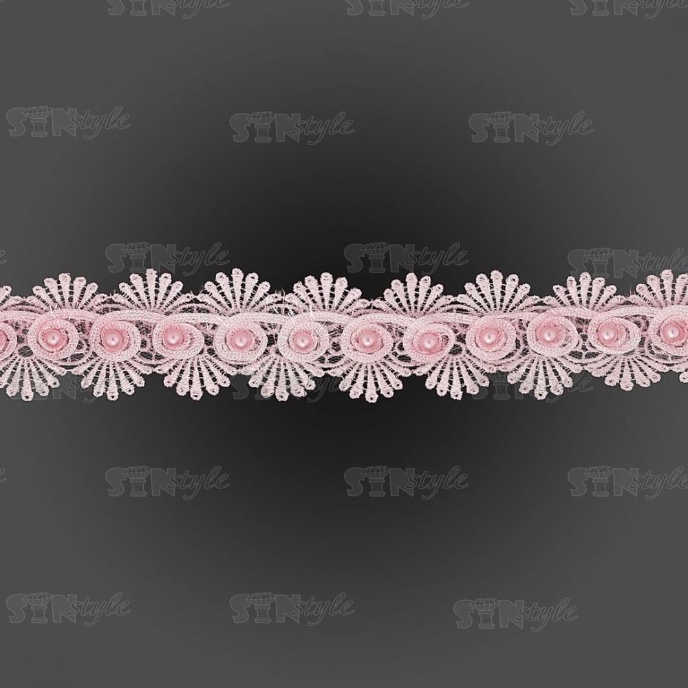 Кружево ажурное с отделкой, на нежной ажурной основе россыпь бутонов розочек с бусиной в середине цветка, ширина 45 мм, намотка 15 ярдов, цвет старо-розовый