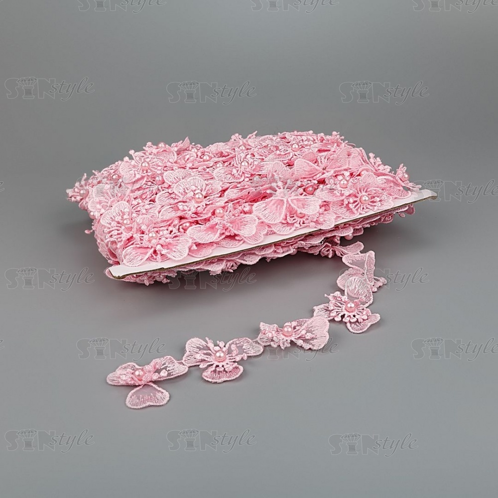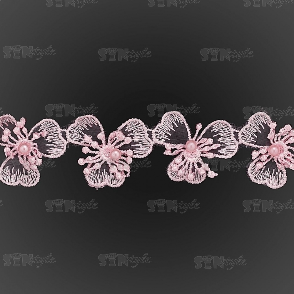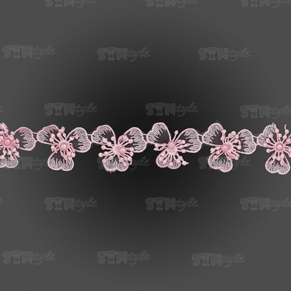 Цветочки из капроновой ленты, нежная цветочная гирлянда с бусиной в центре цветка, ширина 43 мм, намотка 15 ярдов, цвет розовый