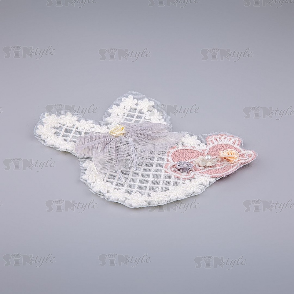 Аппликация на сетке из пайеток "Сердце", размер 200х165 мм, цвет розовый+золотой