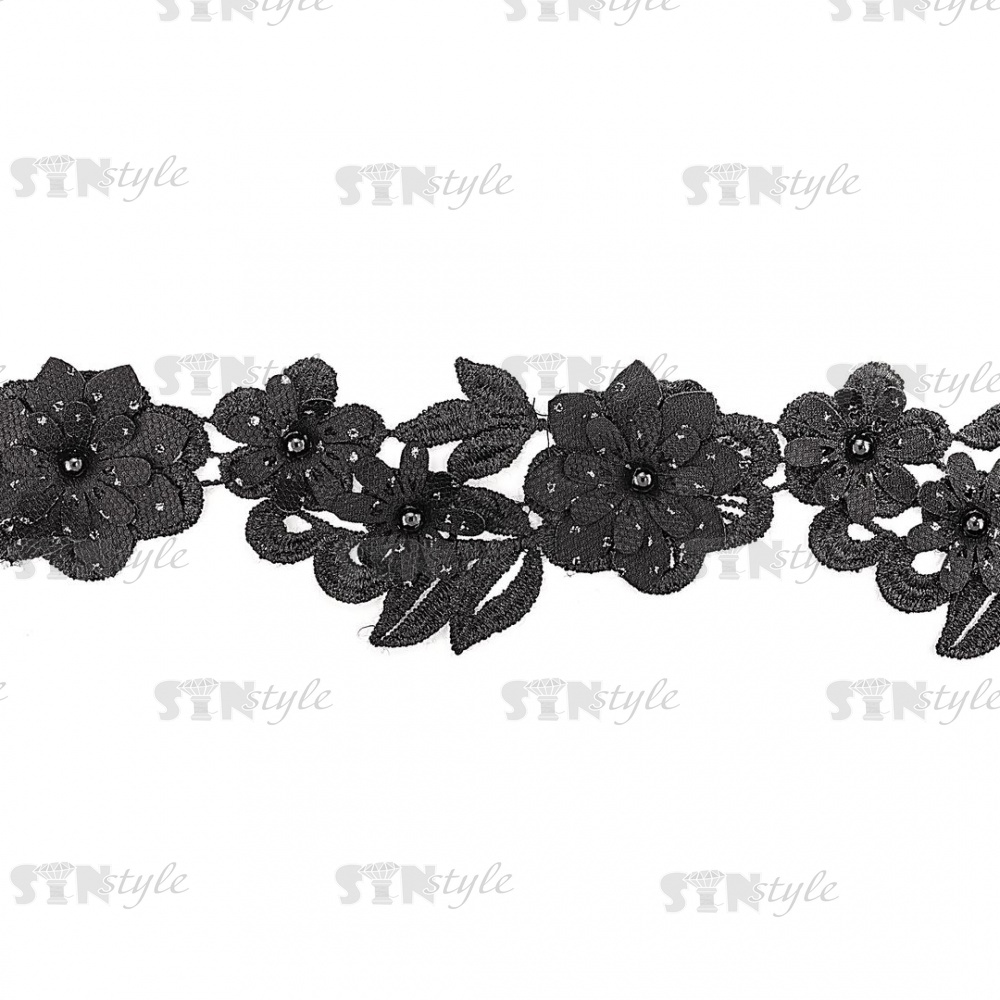 Кружево Цветочное, красивая цветочная гирлянда с бусиной в центре цветка, намотка 10 ярдов, ширина 55 мм, цвет черный