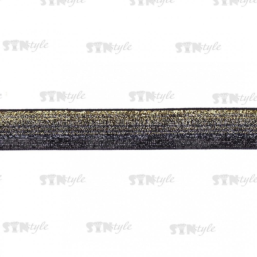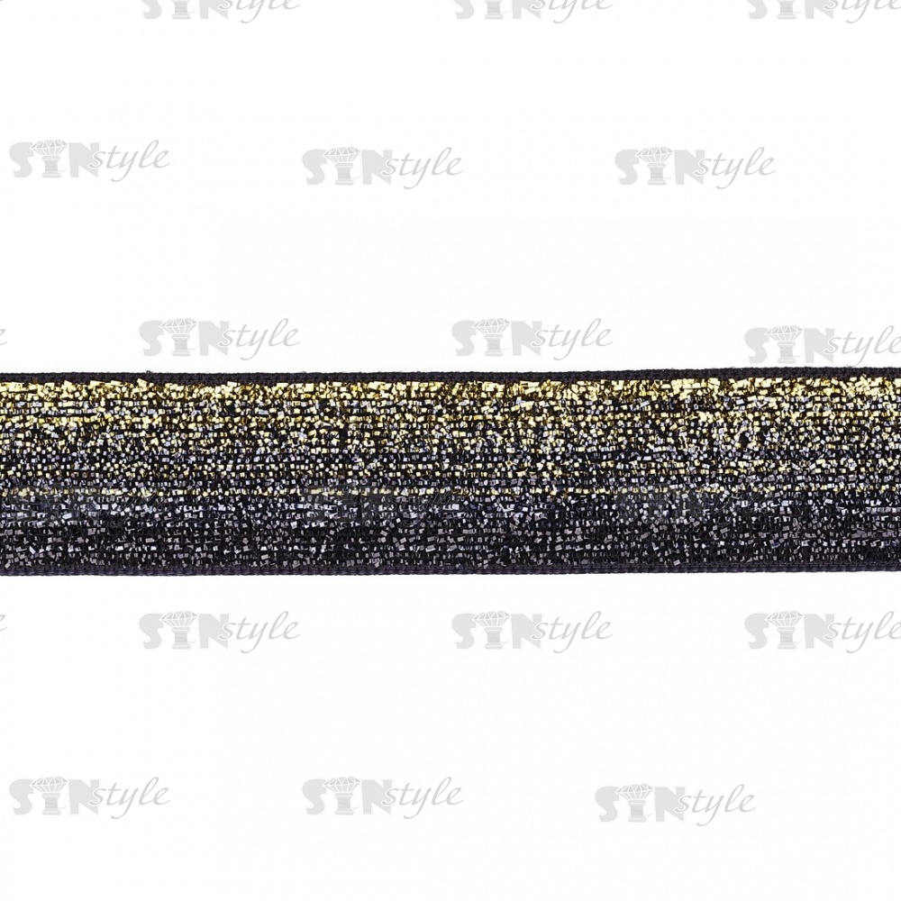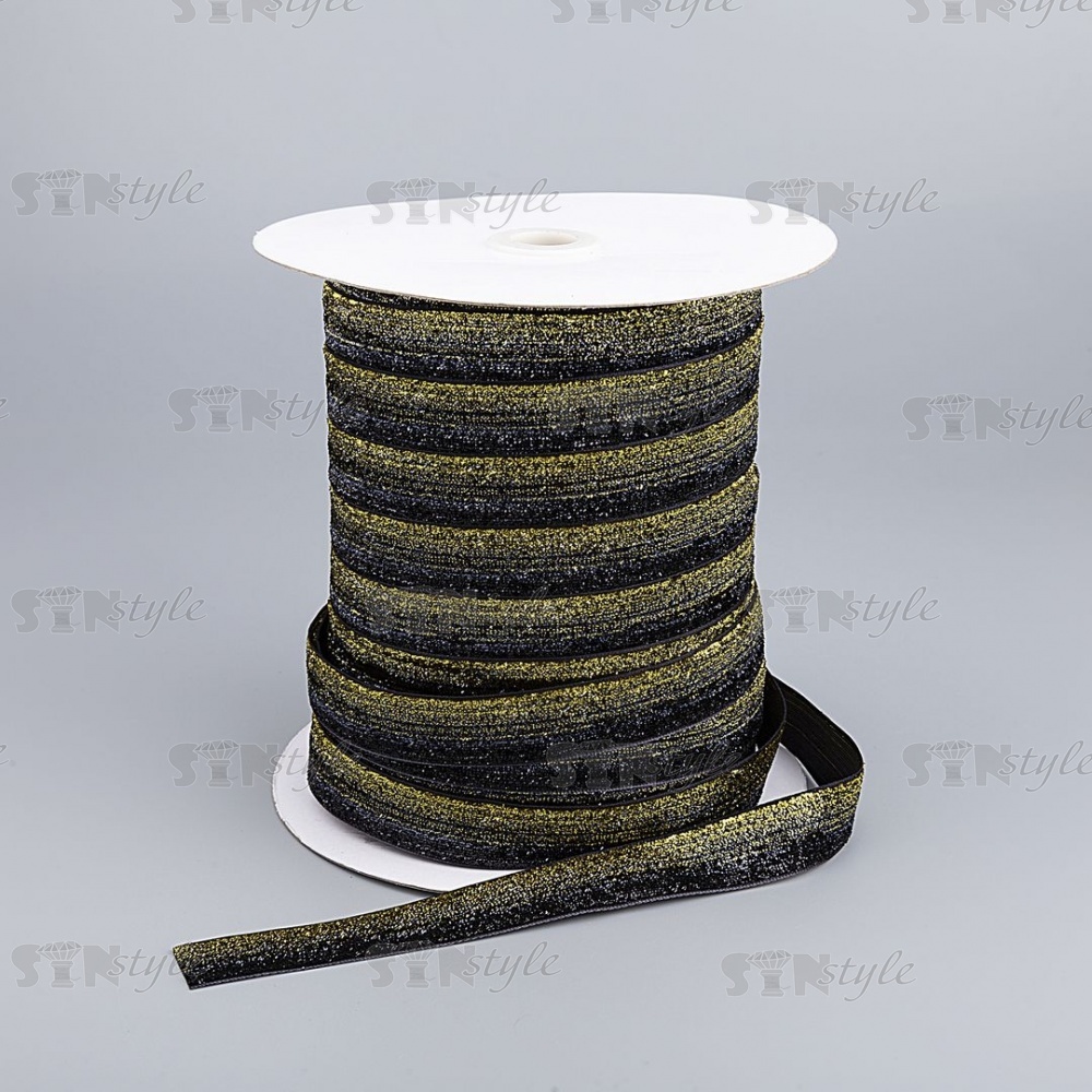 Лента бархатная с люрексом, ширина 20 мм, цвет черный+золотой, намотка 100 ярдов