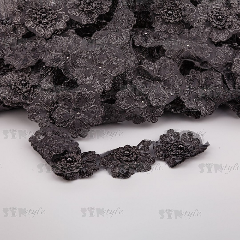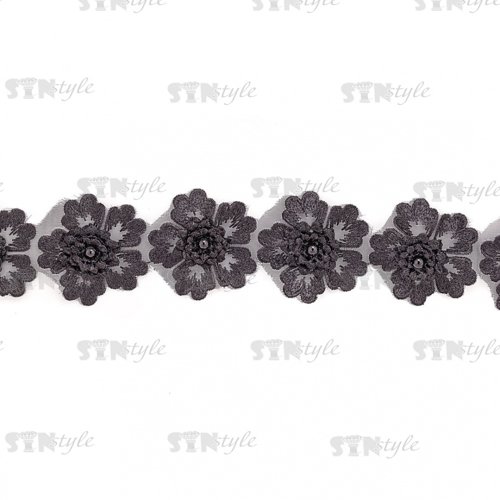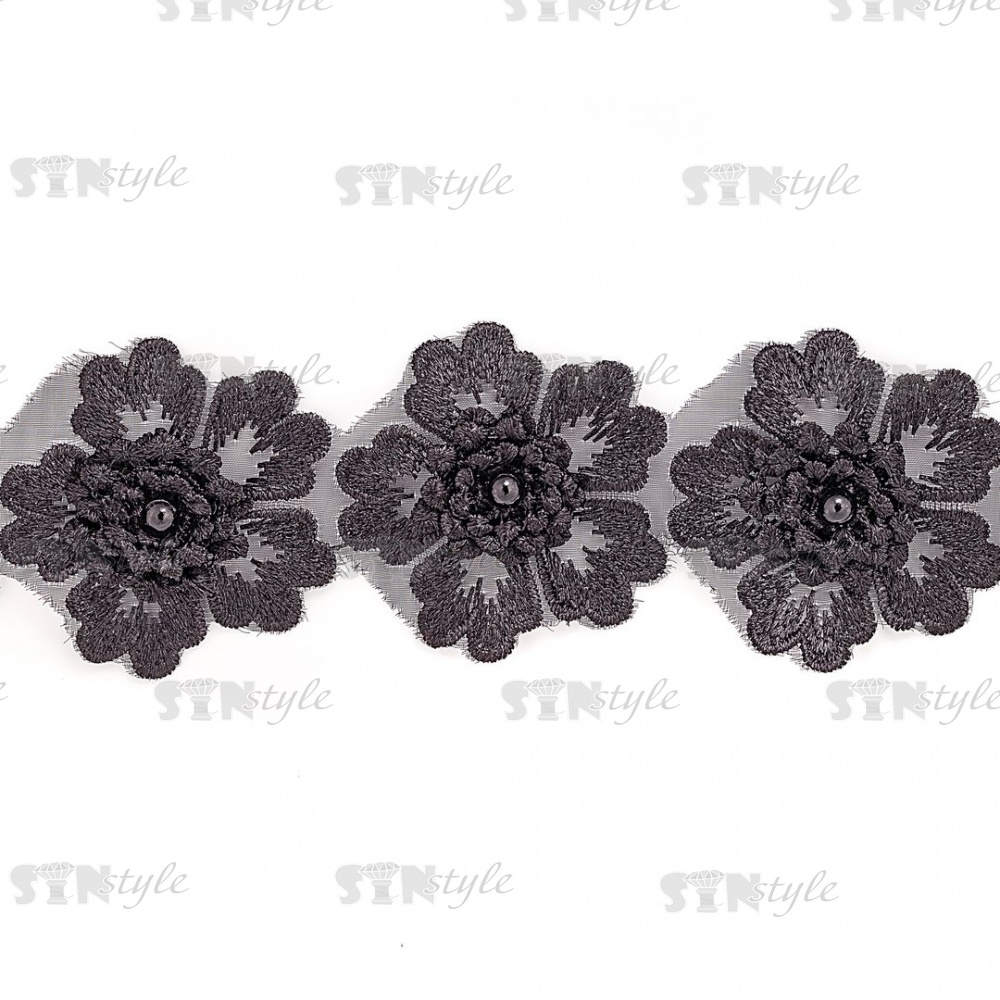 Цветочки из капроновой ленты, размер 55 мм, цвет черный, намотка 20 ярдов, 17 шт/ярд