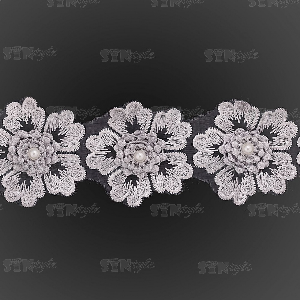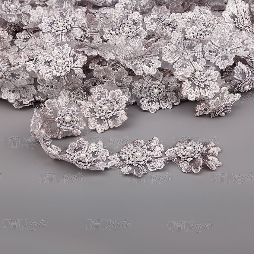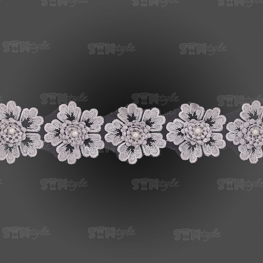 Цветочки из капроновой ленты, размер 55 мм, цвет серый, намотка 20 ярдов, 17 шт/ярд