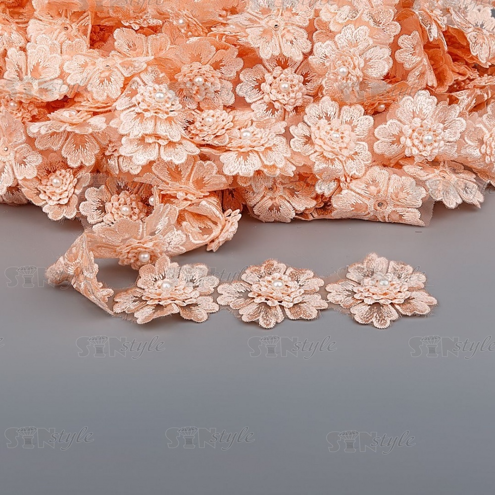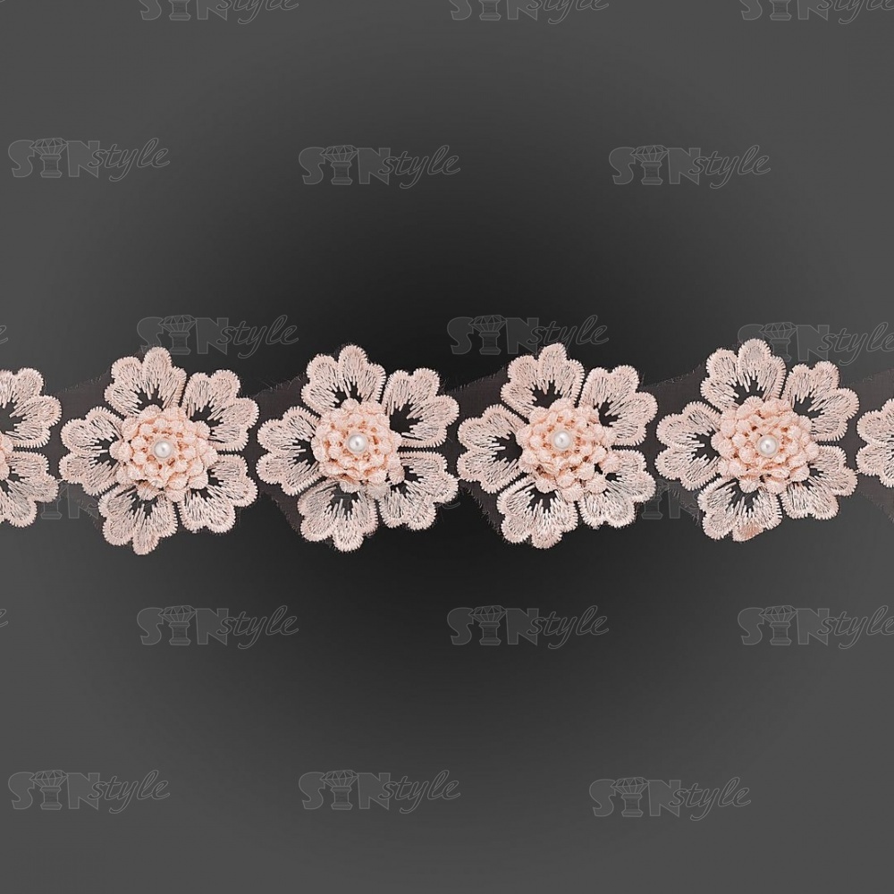 Цветочки из капроновой ленты, размер 55 мм, цвет персиковый, намотка 20 ярдов, 17 шт/ярд