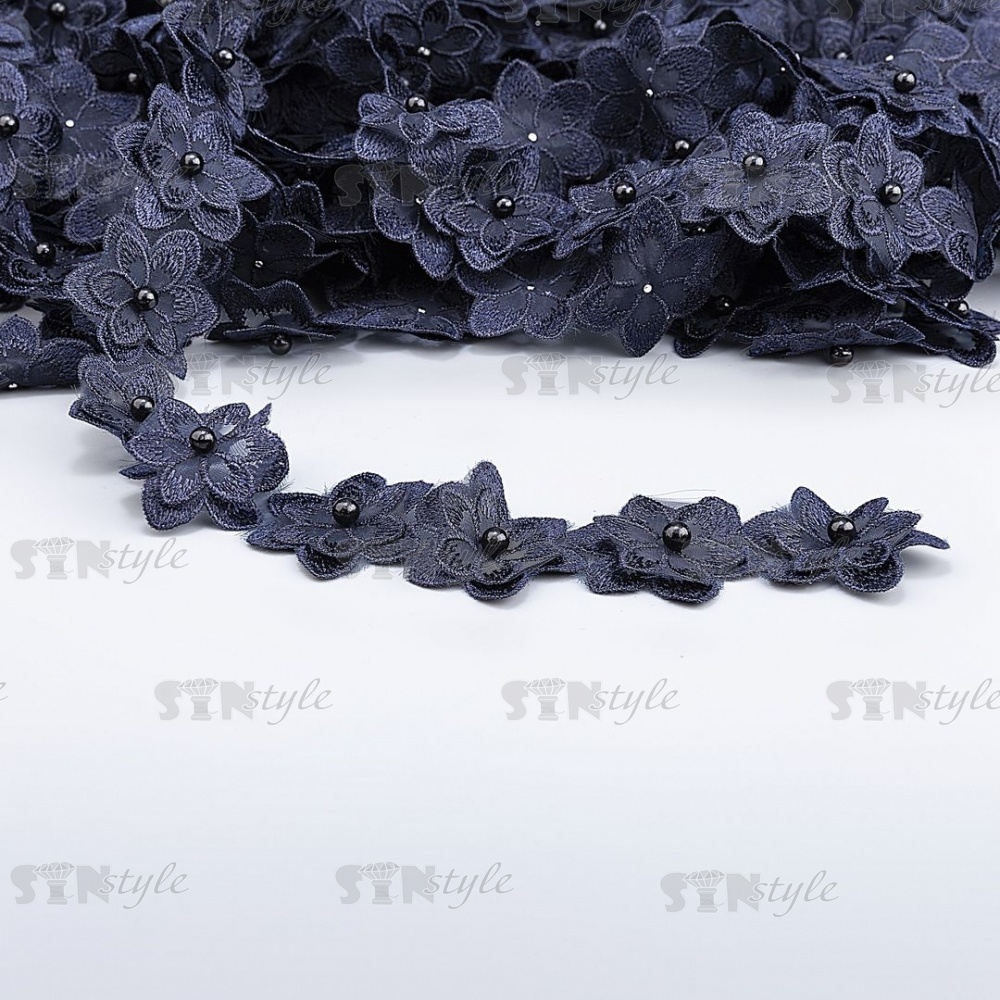 Цветочки из капроновой ленты, размер 45 мм, намотка 20 ярдов, цвет темно-синий (№ 41)