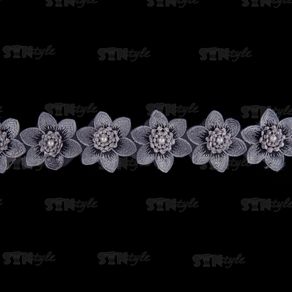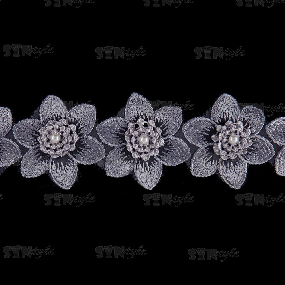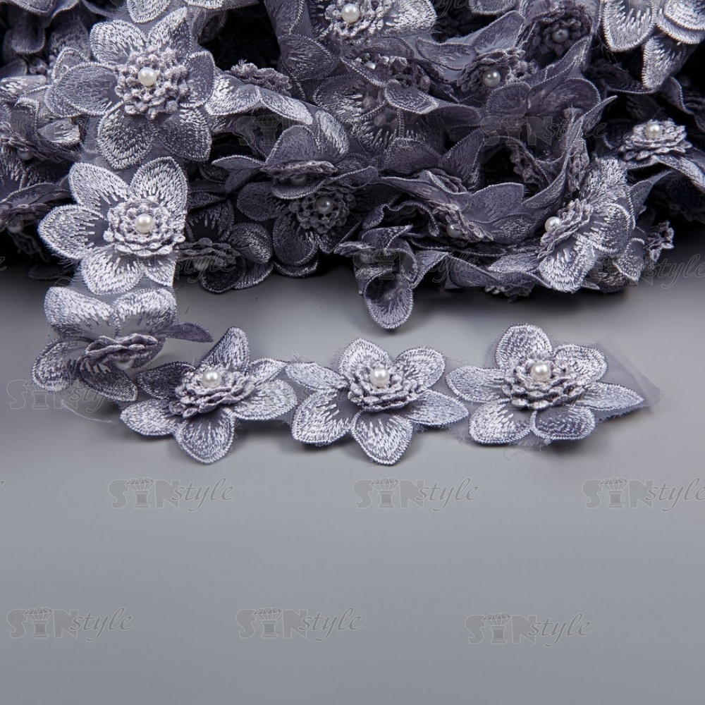 Цветочки из капроновой ленты, ширина 60 мм, намотка 20 ярдов, цвет серый (№ 32)