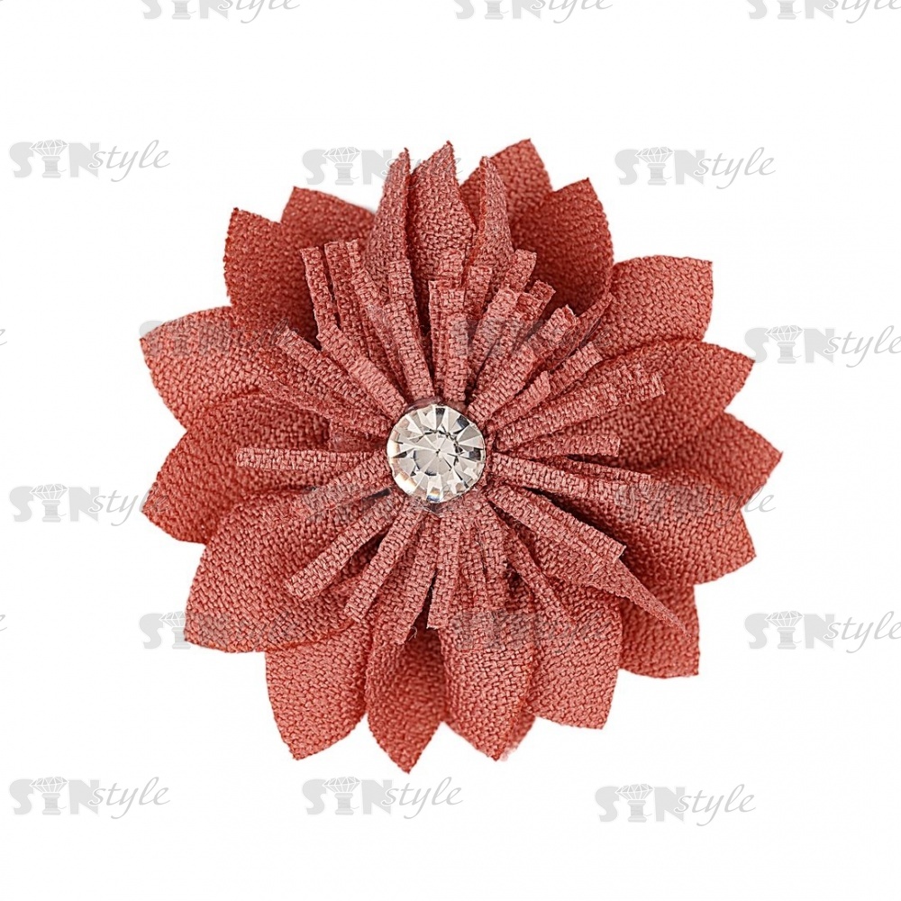 Оригинальный тканевый цветок со стразой прекрасно подойдет в качестве отделочного элемента для женского или детского платья, блузки, театрального костюма, шапочки, косынки берета, повязки, ободка для волос, резинок, заколок, а так же обуви из текстиля. Подобный декор применяется при украшении букетов, подарочной упаковки, праздничных композиций.