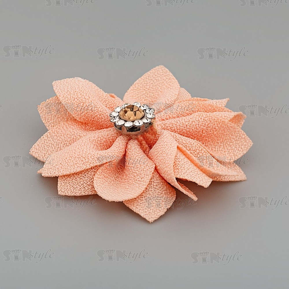 Оригинальный тканевый цветок со стразами прекрасно подойдет в качестве отделочного элемента для женского или детского платья, блузки, театрального костюма, шапочки, косынки берета, повязки, ободка для волос, резинок, заколок, а так же обуви из текстиля. Подобный декор применяется при украшении букетов, подарочной упаковки, праздничных композиций.