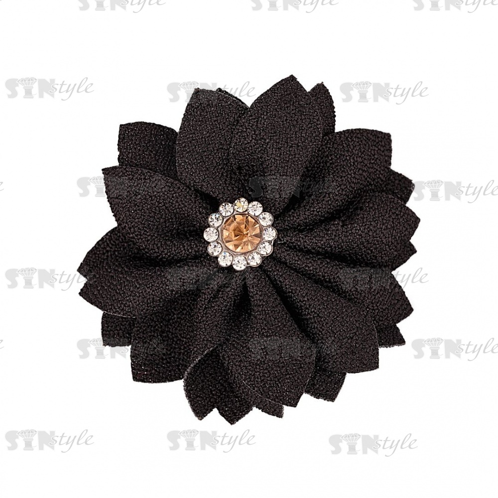 Оригинальный тканевый цветок со стразами прекрасно подойдет в качестве отделочного элемента для женского или детского платья, блузки, театрального костюма, шапочки, косынки берета, повязки, ободка для волос, резинок, заколок, а так же обуви из текстиля. Подобный декор применяется при украшении букетов, подарочной упаковки, праздничных композиций.