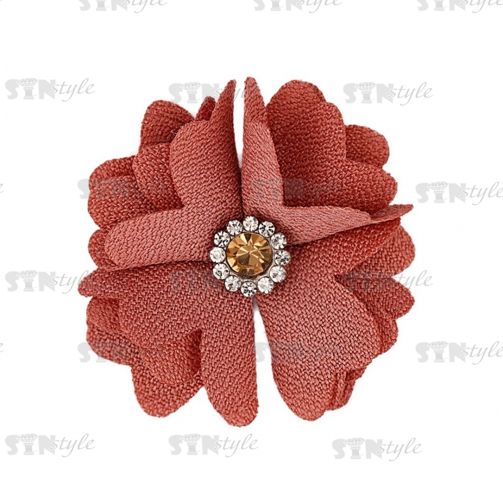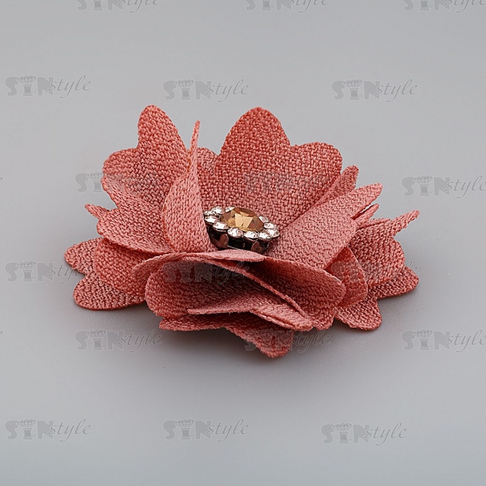 Тканевый оригинальный цветок с лепестками и сердцевинкой из страз. Тканевые цветы имеют широкий диапазон применения: как отделочный элемент для платья, блузки, театрального костюма, шапочки, косынки берета, повязки, ободка для волос, резинок, заколок, а так же обуви из текстиля. Также цветок может быть использован в украшении букетов, подарочной упаковки, праздничных композиций и поможет решить любую задачу декорирования.