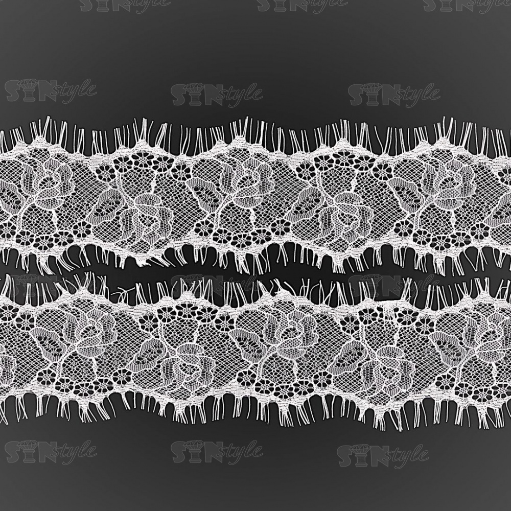 Французское кружево Шантильи с "ресничками" украсит любое изделие, сделав его изысканным, утончённым. Кружево неэластичное, тянется лишь слегка за счет переплетения нитей. Тактильно - очень приятное на ощупь. Идеально подходит для пошива нижнего белья, элегантной домашней одежды, халатов, маек, повседневной и праздничной одежды, используется при изготовлении аксессуаров, текстиля для дома.
