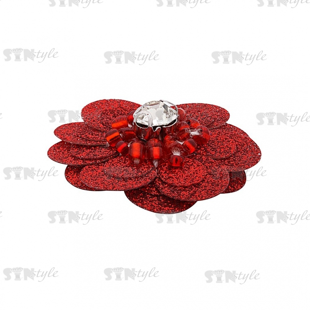 Аппликация с элементами из бисера, цвет красный+белая страза, диаметр 30 мм