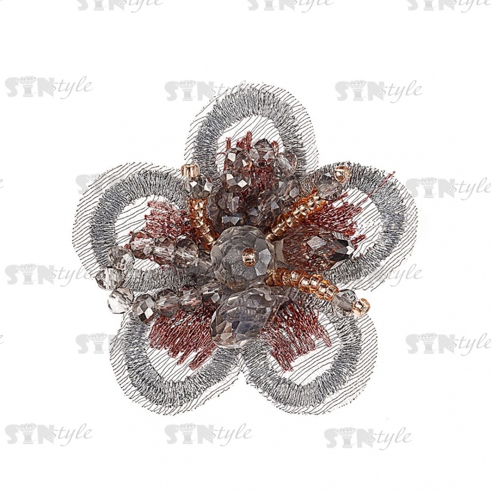 Аппликация с элементами из бисера, цвет серый, размер 40 мм