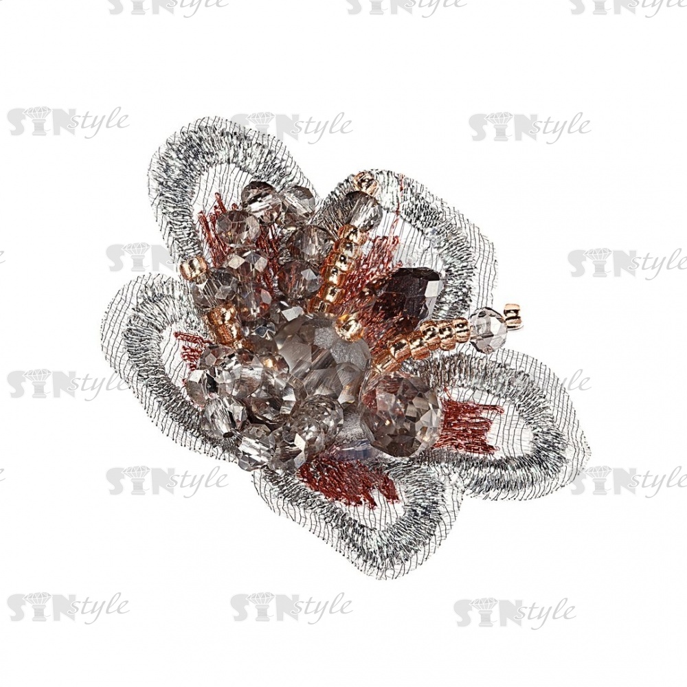 Аппликация с элементами из бисера и страз. Украшение крепится к поверхности посредством пришивания. Данная модель прекрасно подойдет для декорирования одежды, обуви и аксессуаров, заколок и ободков для волос. Также может использоваться в скрапбукинге при оформлении альбомов, открыток, при декорировании разных поверхностей, изготовлении кукол. Украшение прекрасно подойдет для декорирования вязаных корзинок, сумок, клатчей, рюкзаков и других изделий ручной работы. Сделать вещь по-настоящему неповторимой позволит широкий выбор пришивных элементов с бисером нашего магазина.