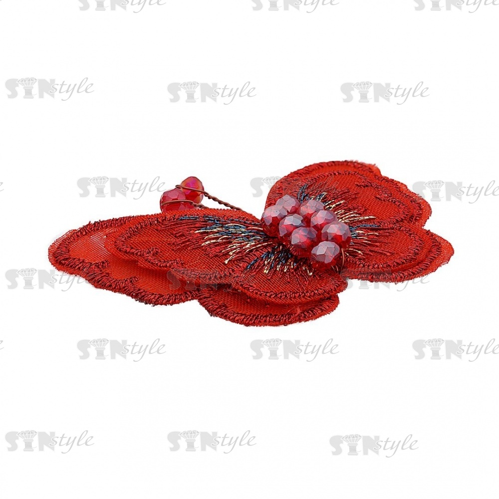 Аппликация с элементами из бисера, цвет красный, размер 50х40 мм