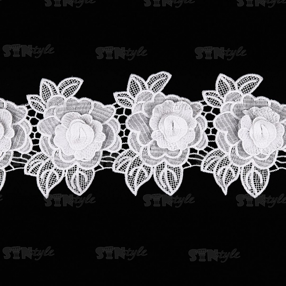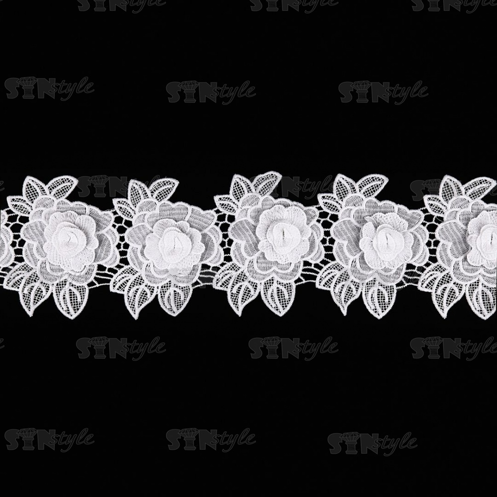 Кружево Цветочное, на ажурной кружевной основе нежная цветочная гирлянда с объемным цветком, ширина 100 мм, цвет белый, намотка 15 ярдов