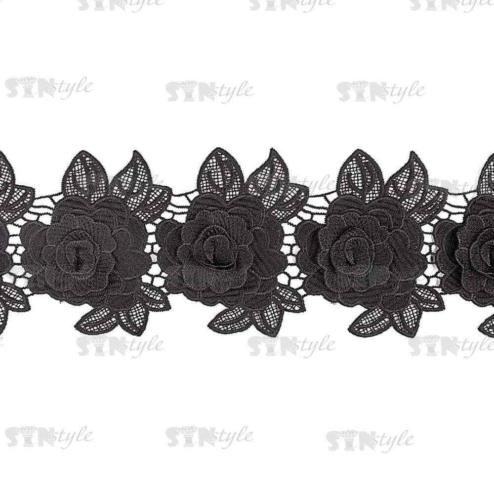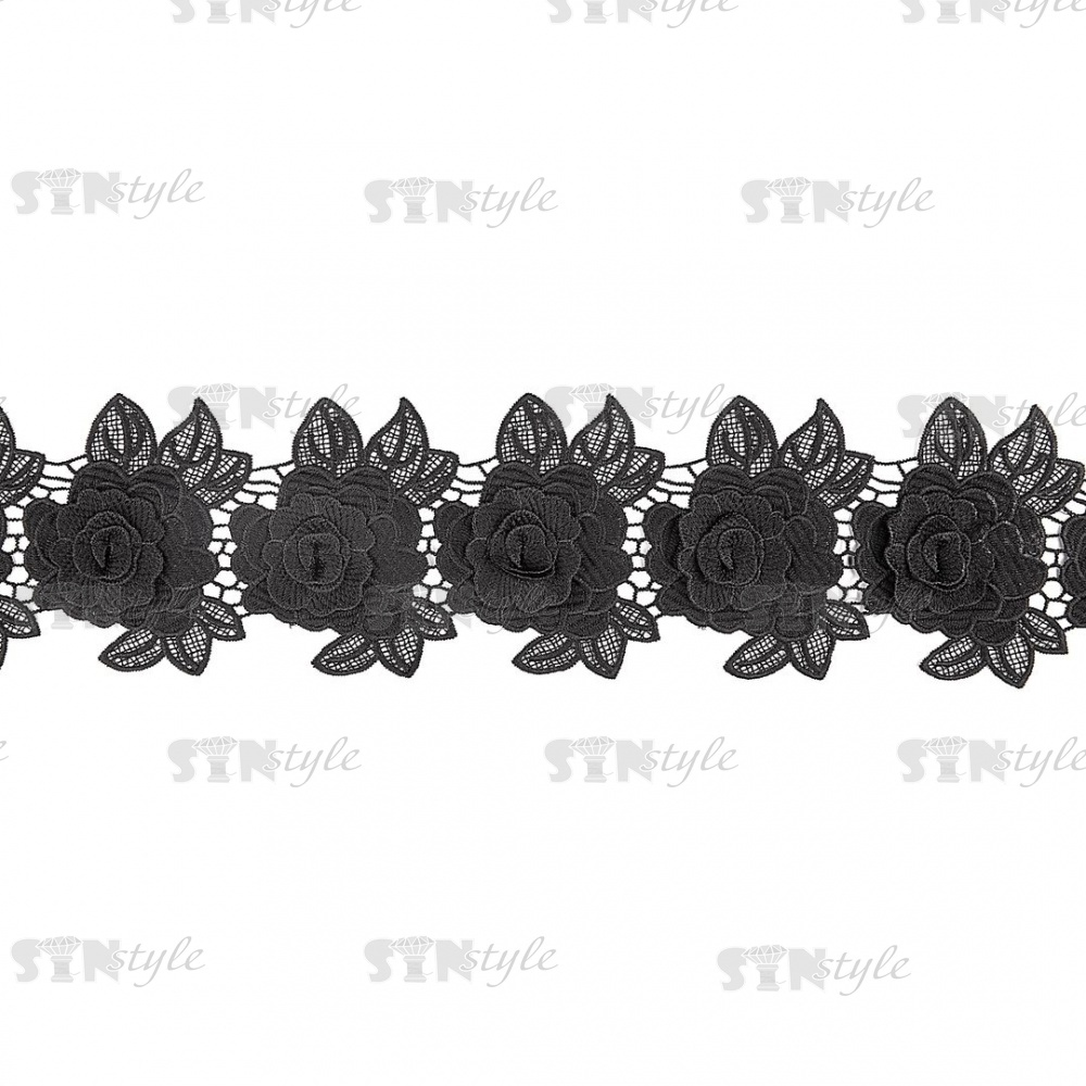 Кружево Цветочное, на ажурной кружевной основе нежная цветочная гирлянда с объемным цветком, ширина 100 мм, цвет белый, намотка 15 ярдов
