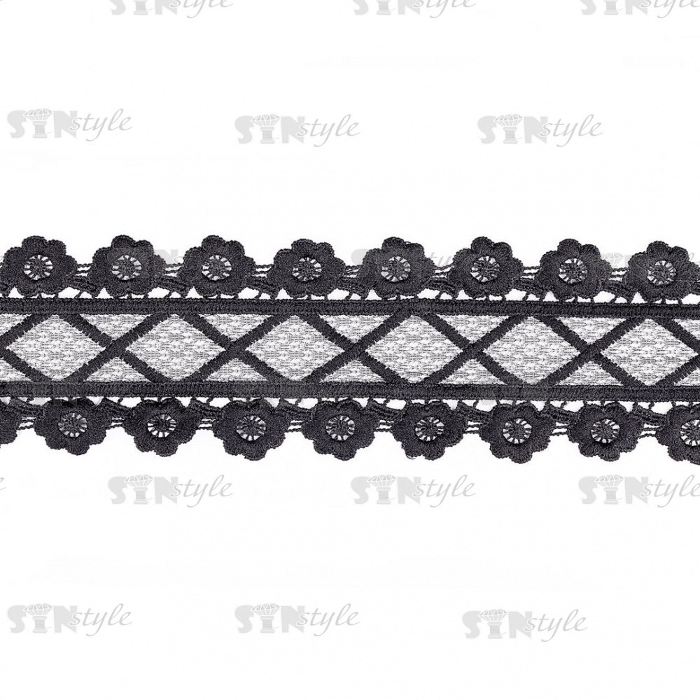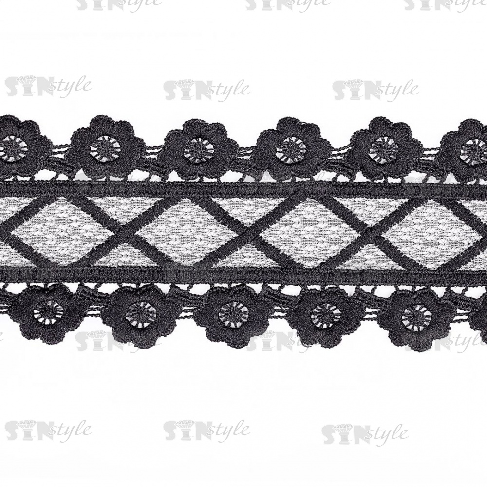 Кружево ажурное матовая нить, цвет черный, намотка 15 ярдов, ширина 65 мм
