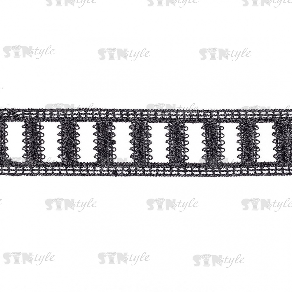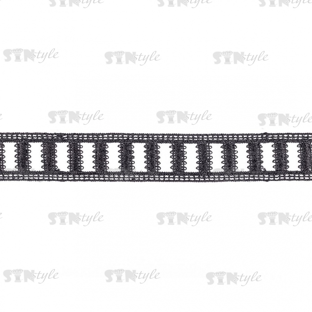 Кружево вязаное ажурное, цвет черный, намотка 15 ярдов, ширина 30 мм