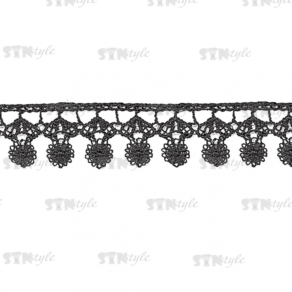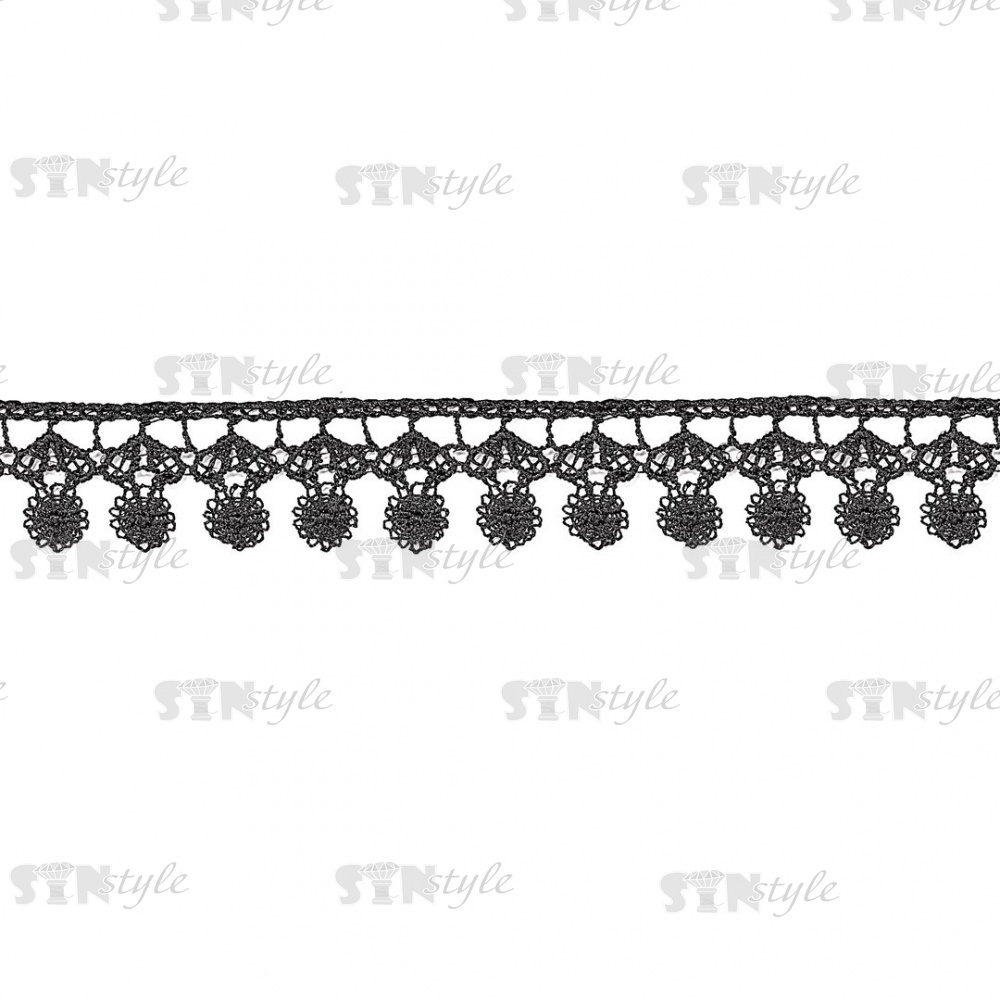 Кружево ажурное, нежная тонкая цветочная гирлянда с резным краем, ширина 20 мм, цвет черный, намотка 15 ярдов