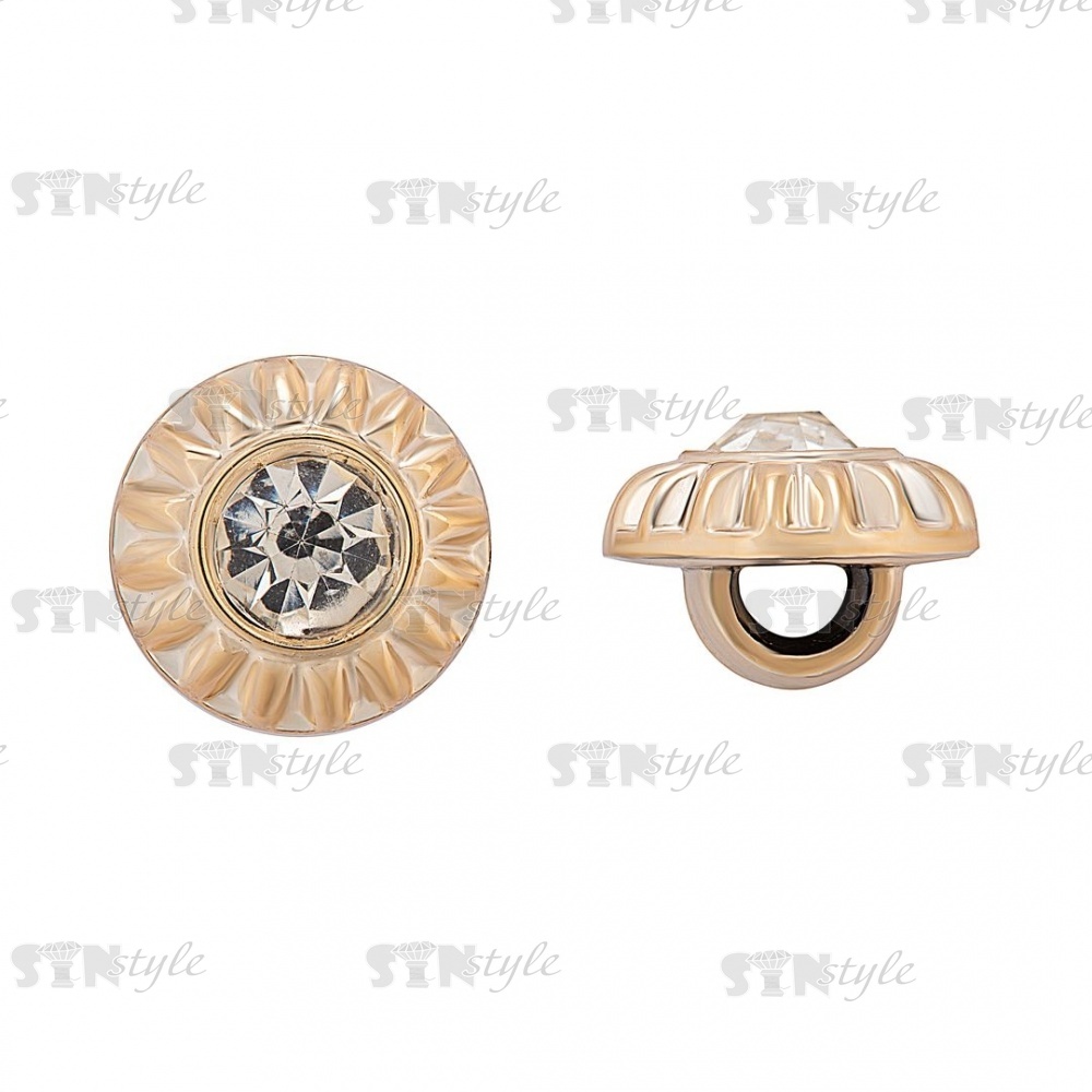 Пуговица пластиковая на ножке, размер 20L, цвет золотой+белая страза