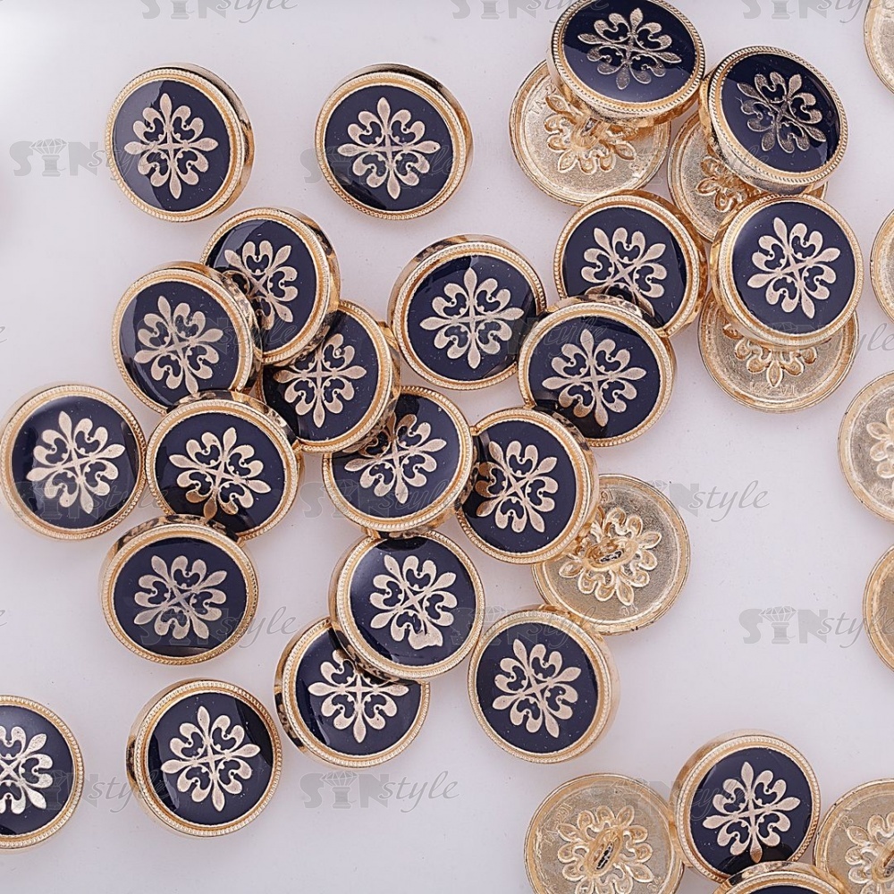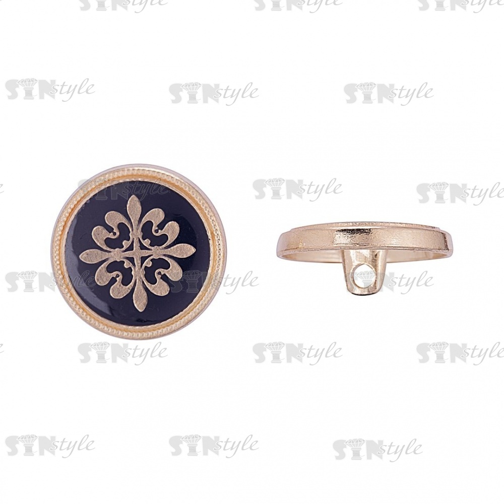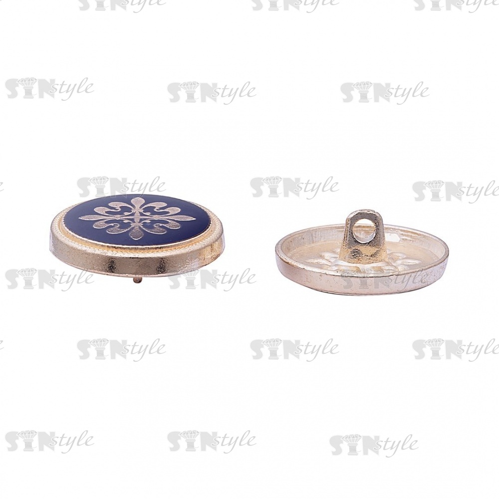 Пуговица металлическая на ножке, золотая с синим, 32L