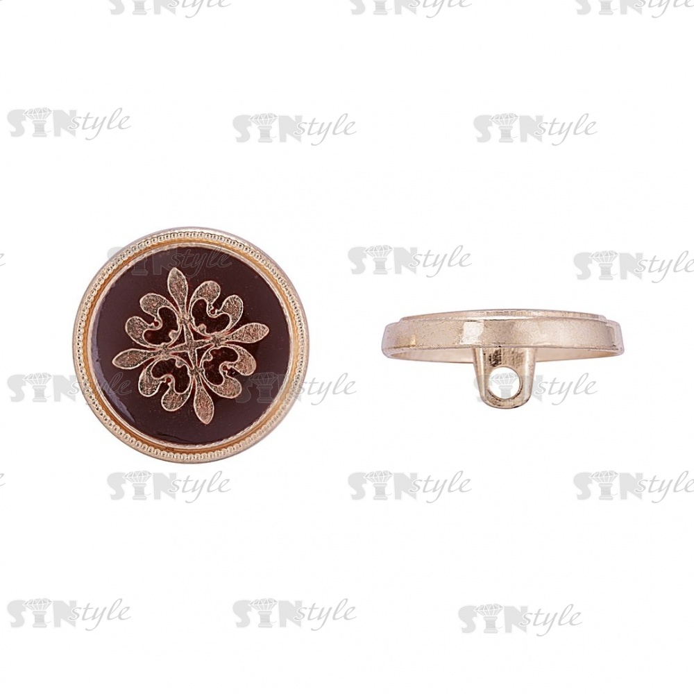 Пуговица металлическая на ножке, золотая с бордовым, 32L