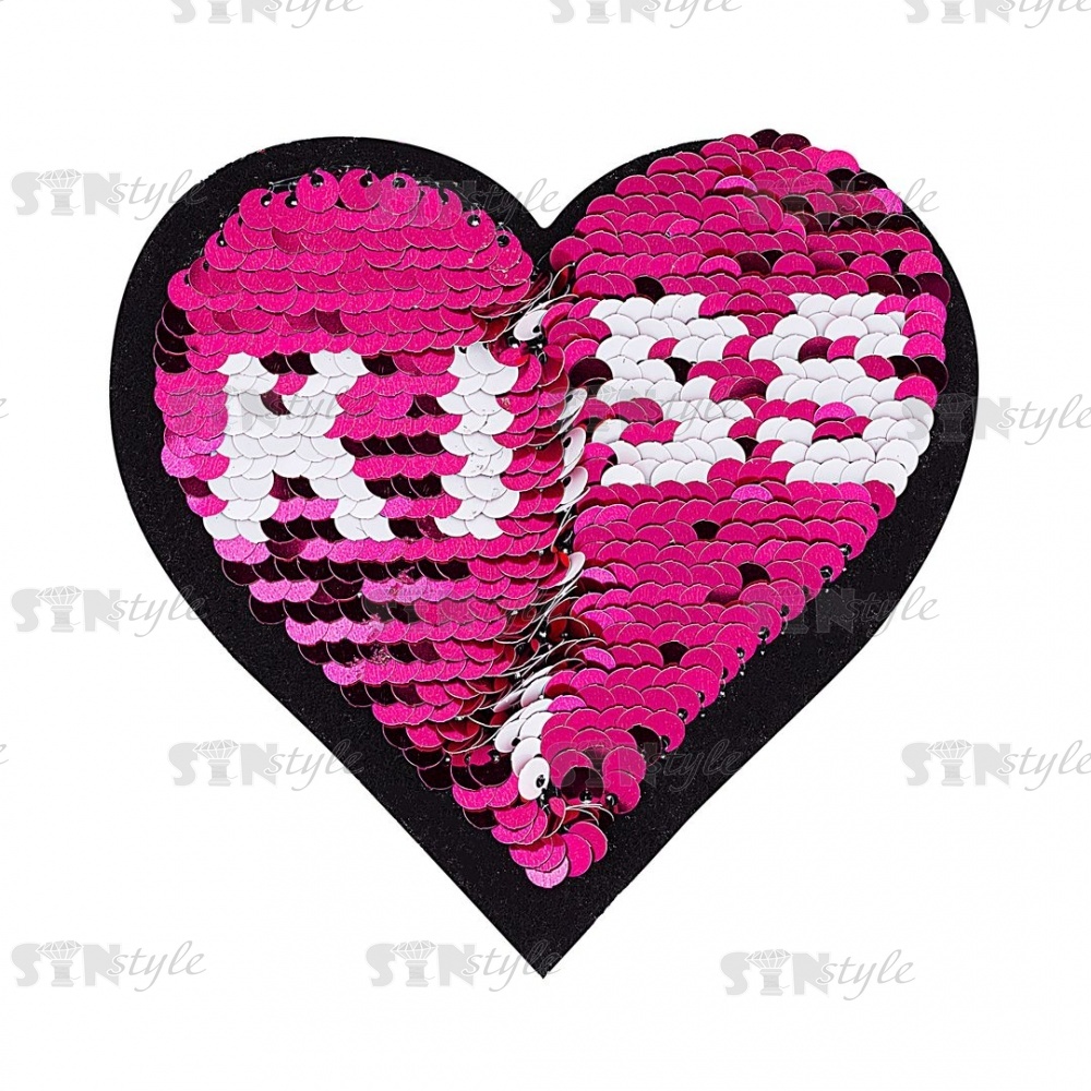 Термоаппликация "Сердце" с пайетками, размер 90х85 мм