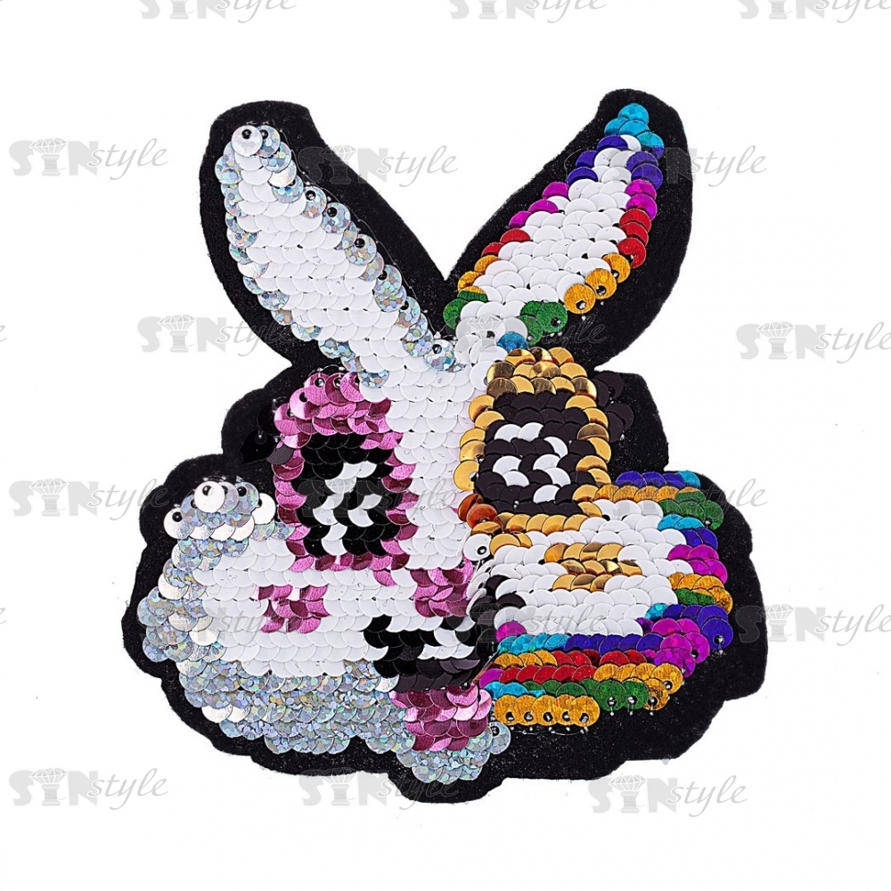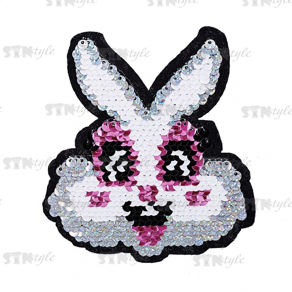 Термоаппликация "Зайчик" с пайетками, размер 95х100 мм