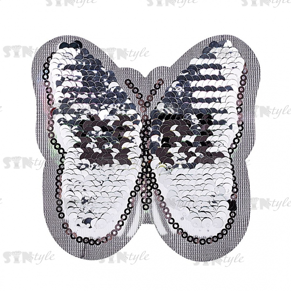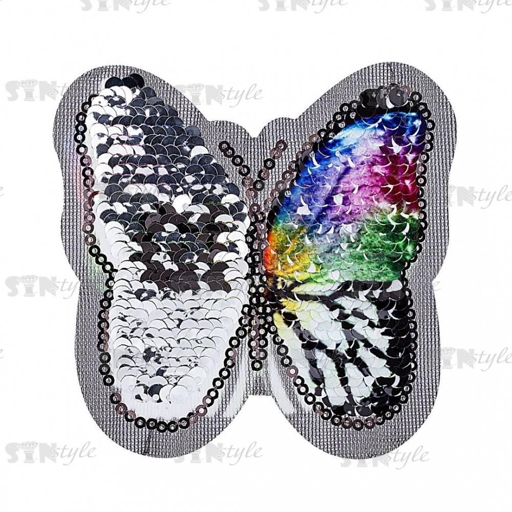 Аппликация пришивная на сетке из пайеток "Бабочка", размер 87х82 мм