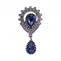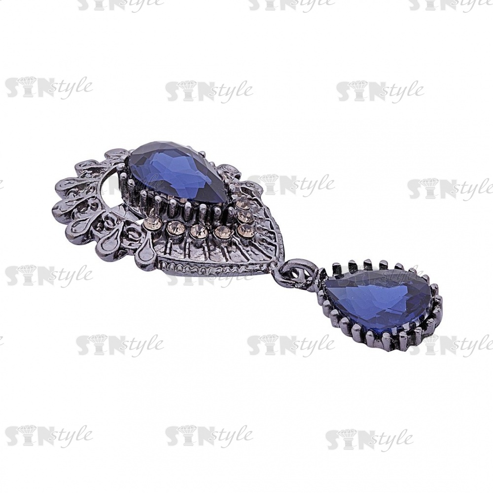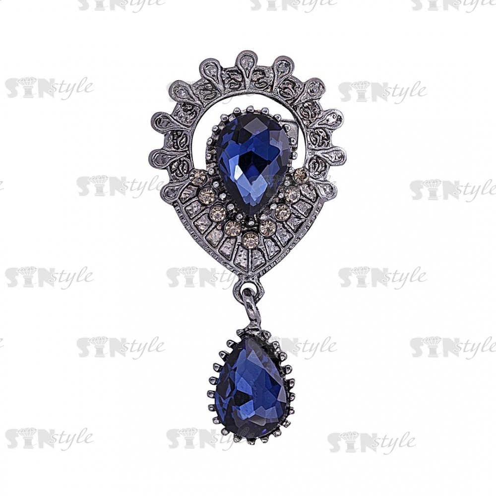 Брошь с подвеской, застежка булавка, цвет темный никель+синие стразы, размер 28х54 мм