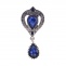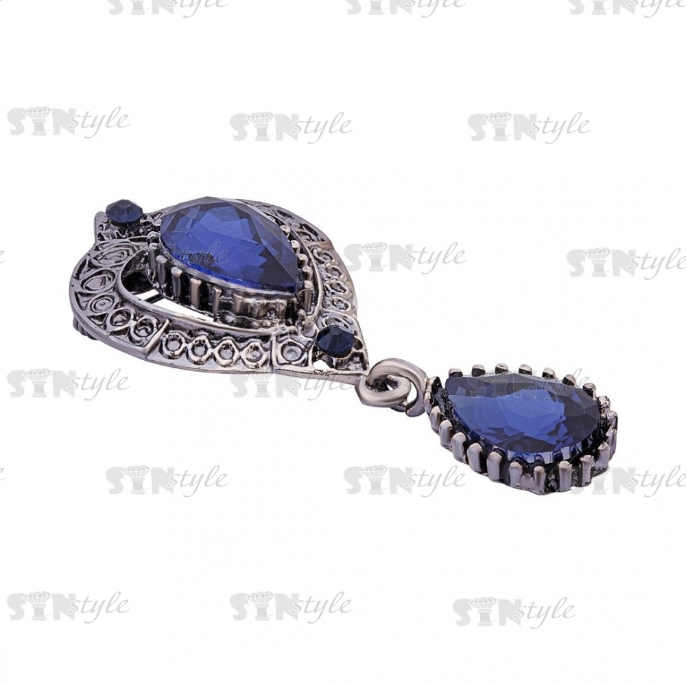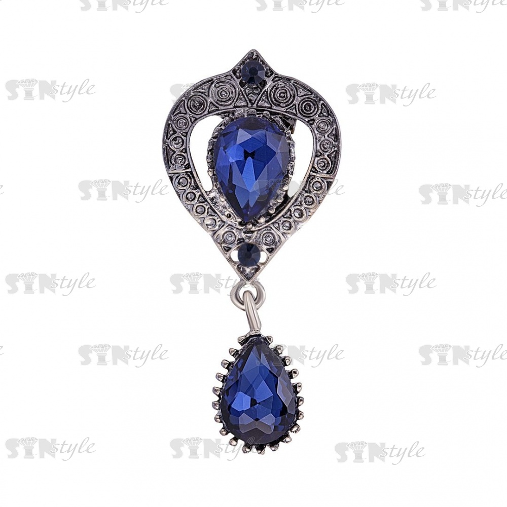 Брошь с подвеской, застежка булавка, цвет темный никель+синие стразы, размер 24х53 мм