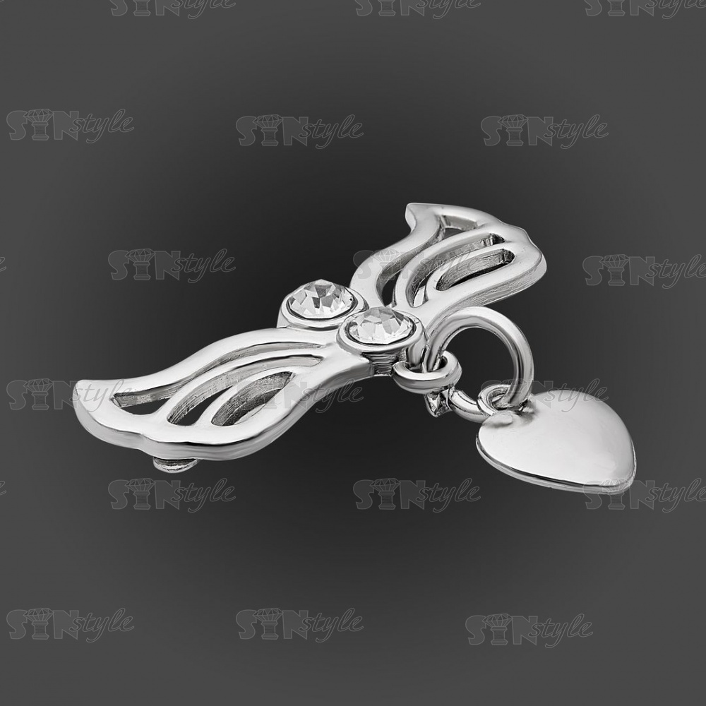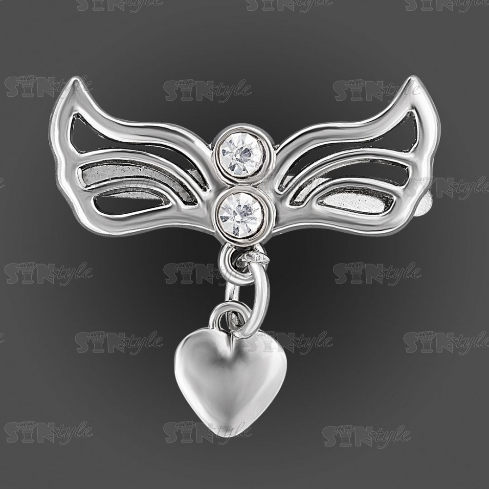 Брошь металлическая со стразами, крепление усики, цвет никель+белые стразы, размер 32х30 мм