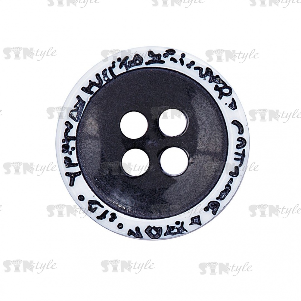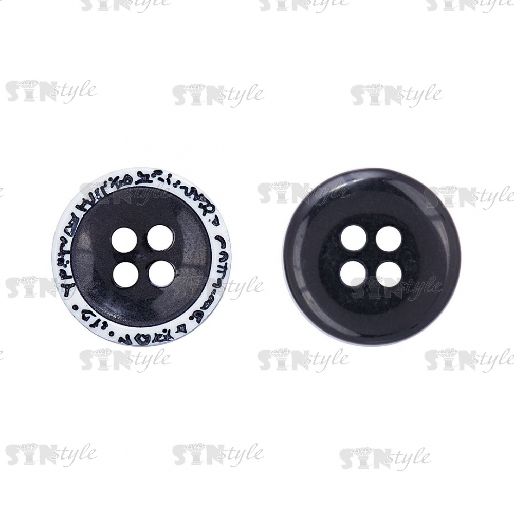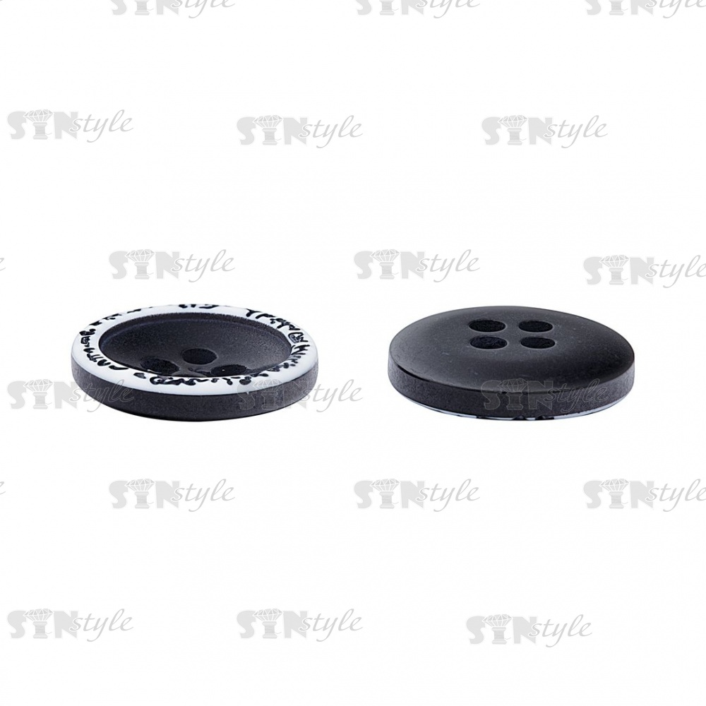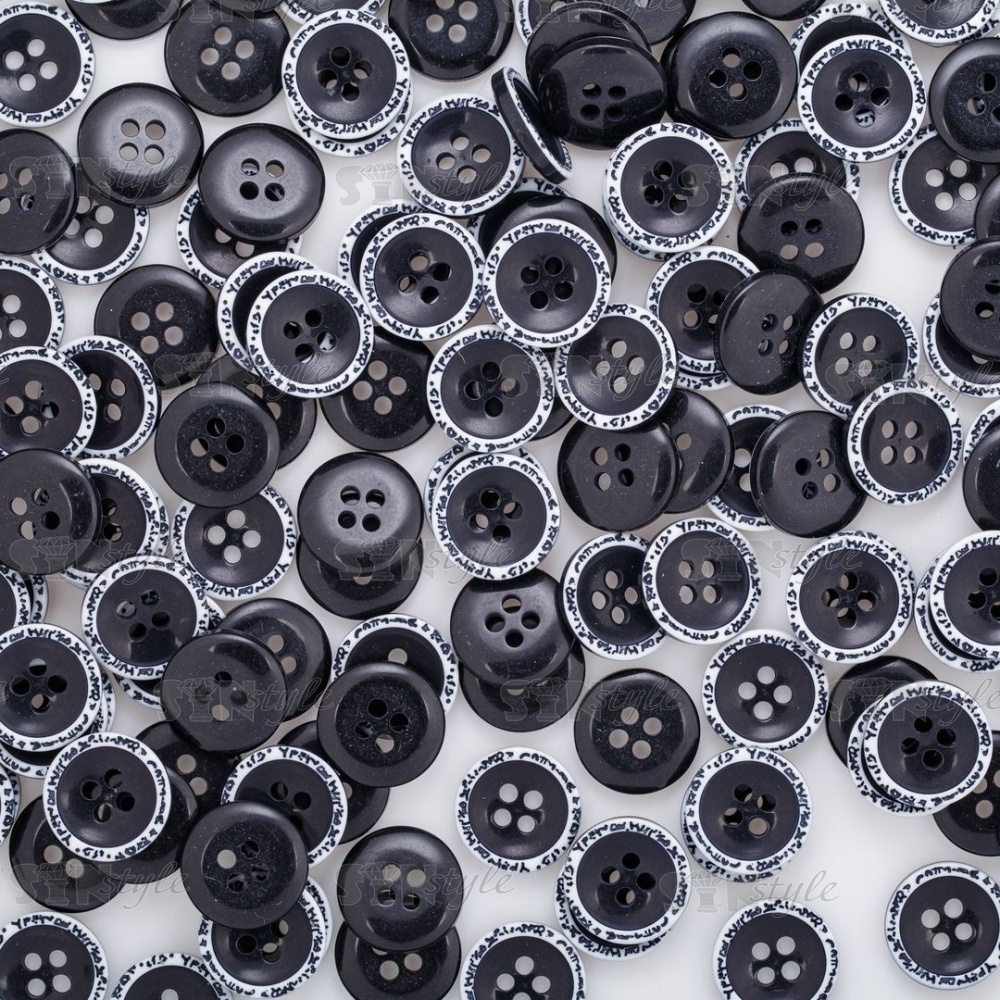 Пуговица пластиковая на четыре прокола, размер 24L, цвет черный/белый