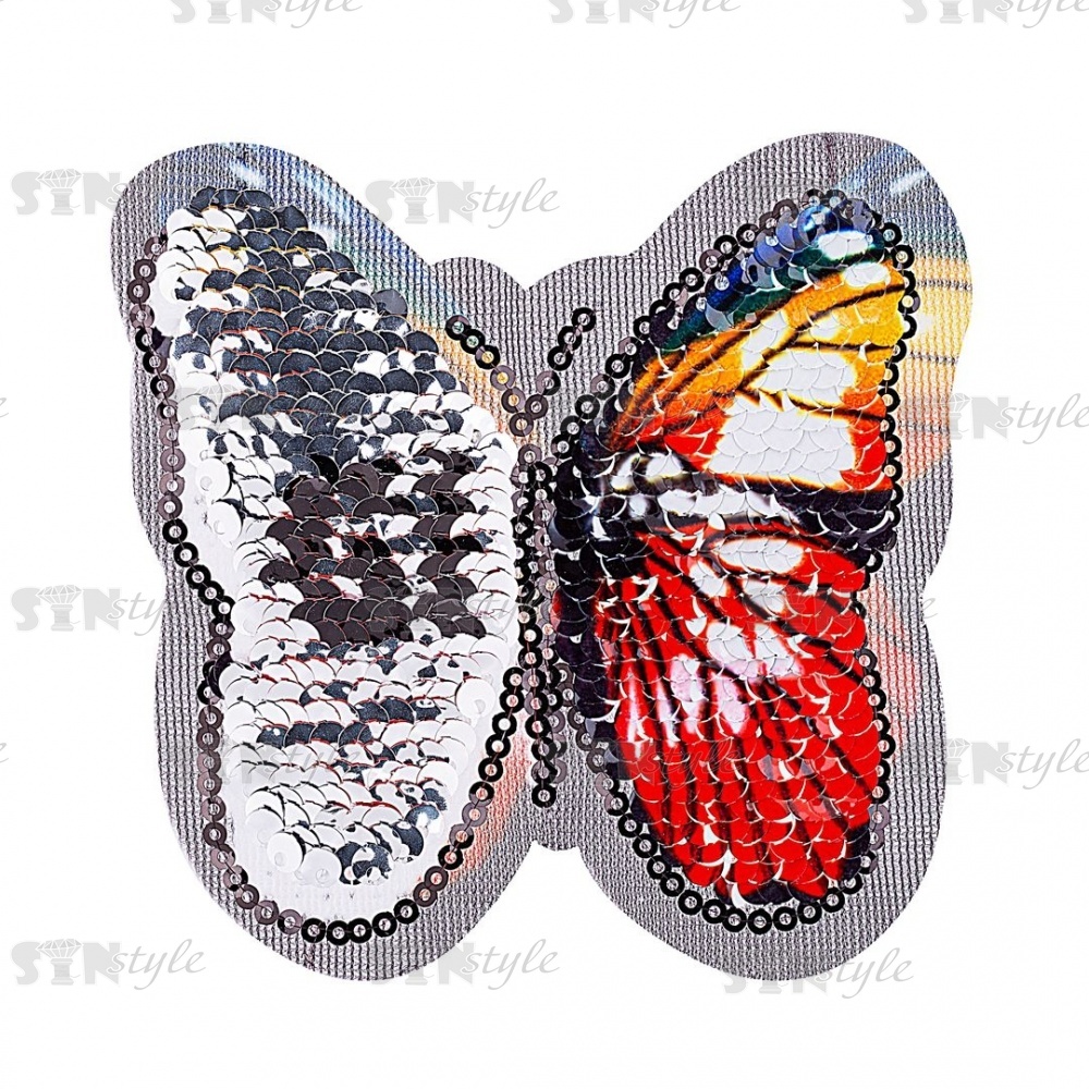 Аппликация пришивная на сетке из пайеток "Бабочка", размер 87х82 мм