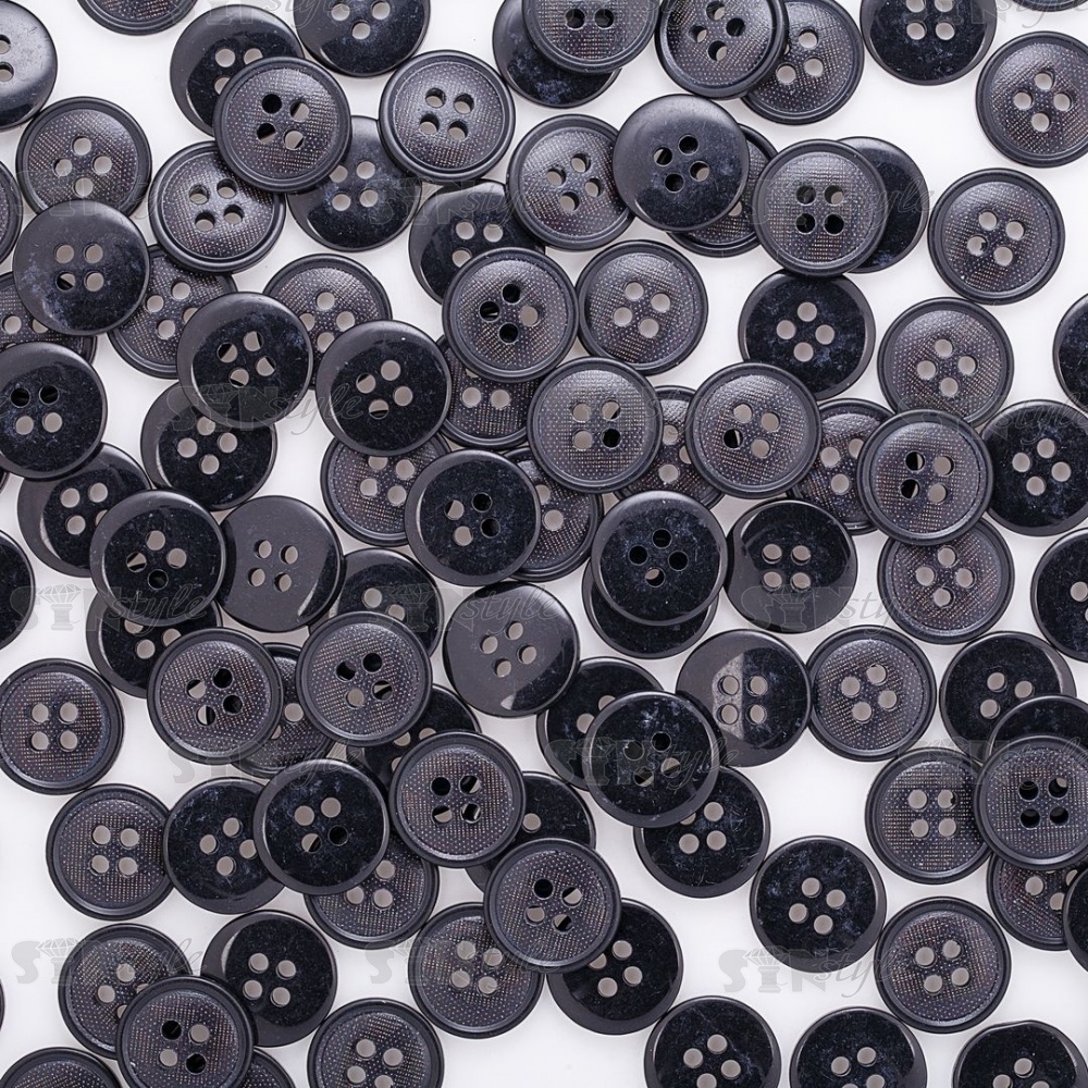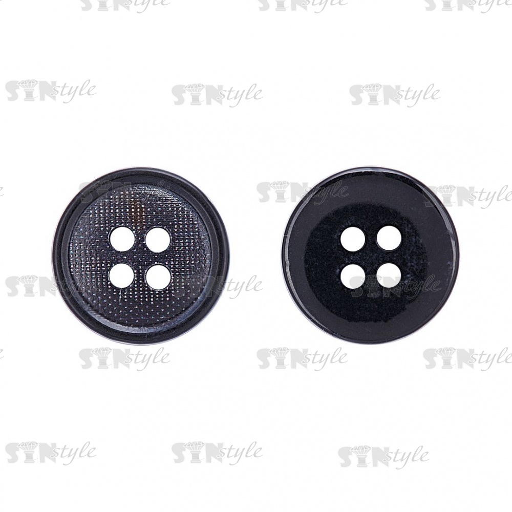 Пуговица пластиковая на четыре прокола, размер 24L, цвет черный