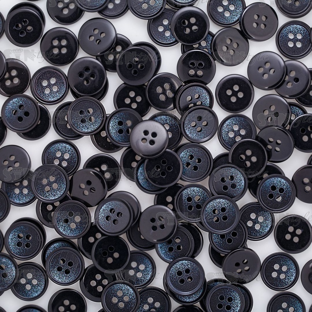 Пуговица пластиковая на четыре прокола, размер 24L, цвет черный