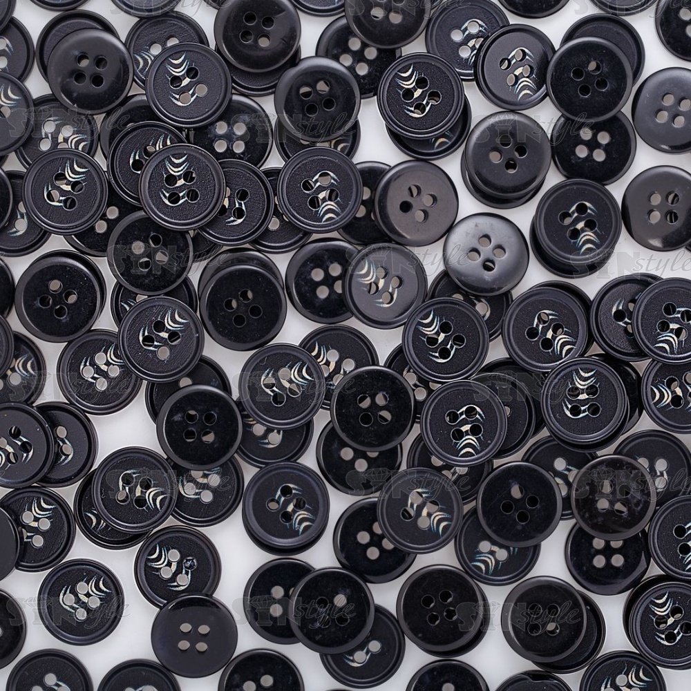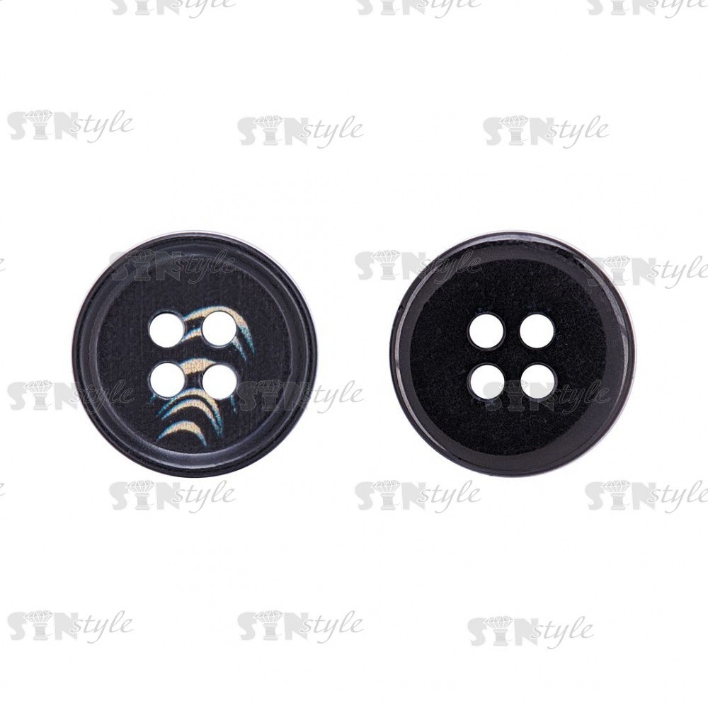Пуговица пластиковая на четыре прокола, размер 24L, цвет черный/бежевый