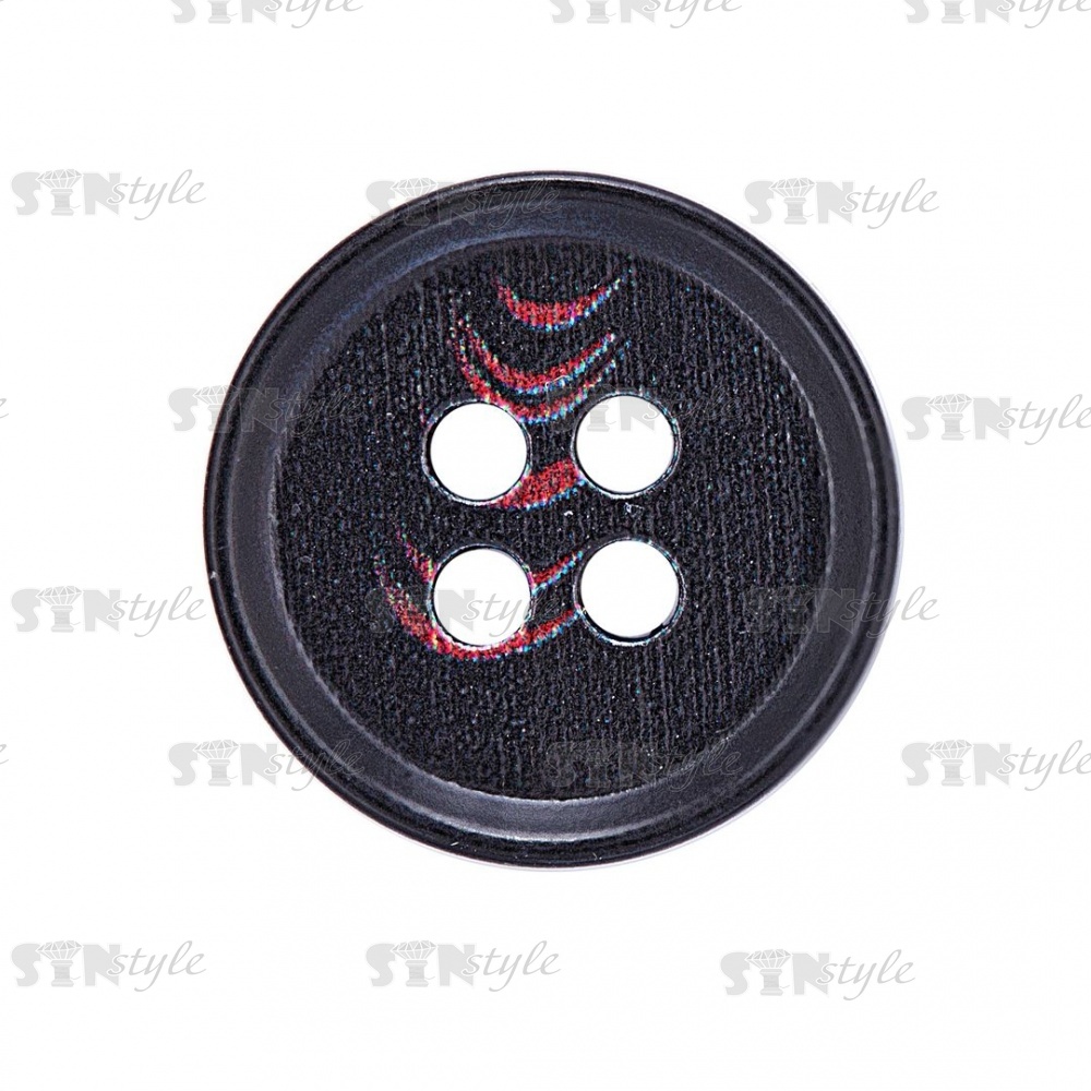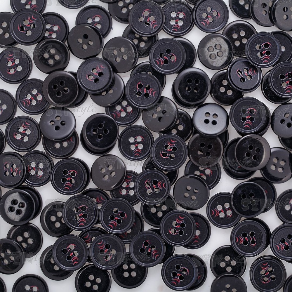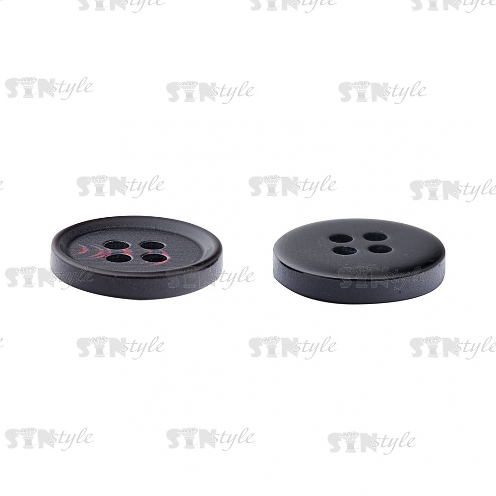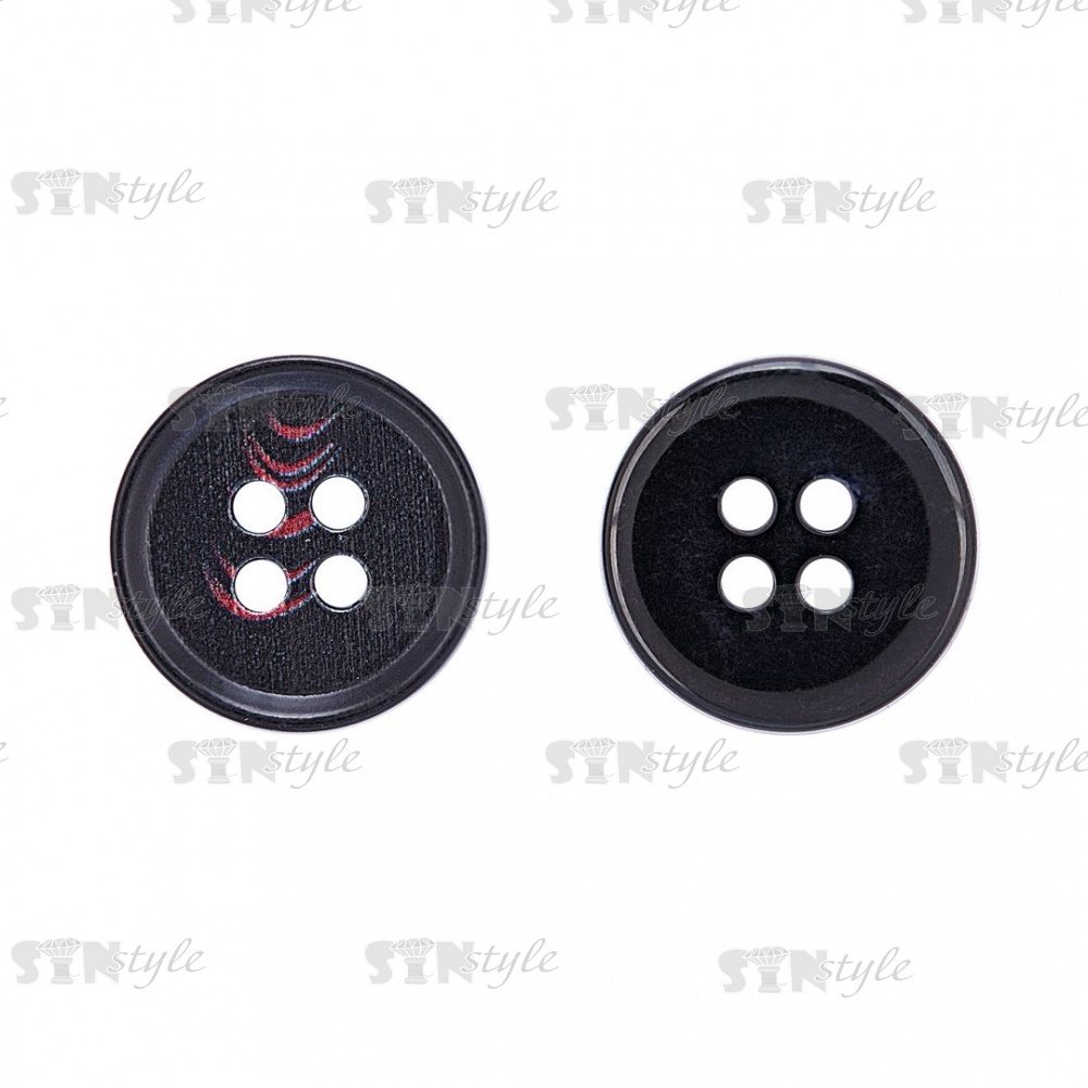 Пуговица пластиковая на четыре прокола, размер 24L, цвет черный/бордовый