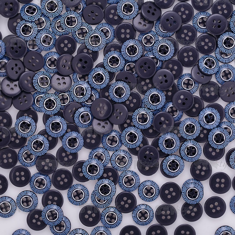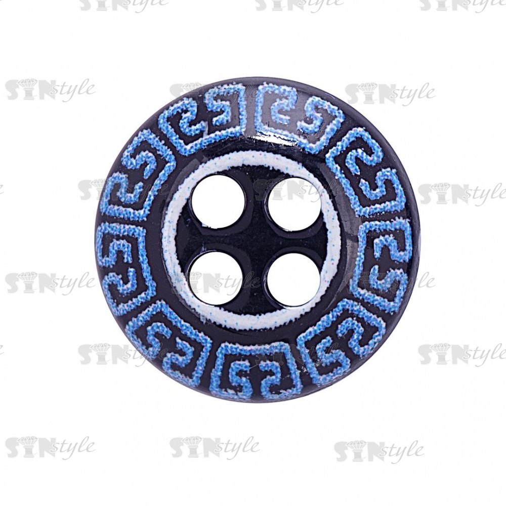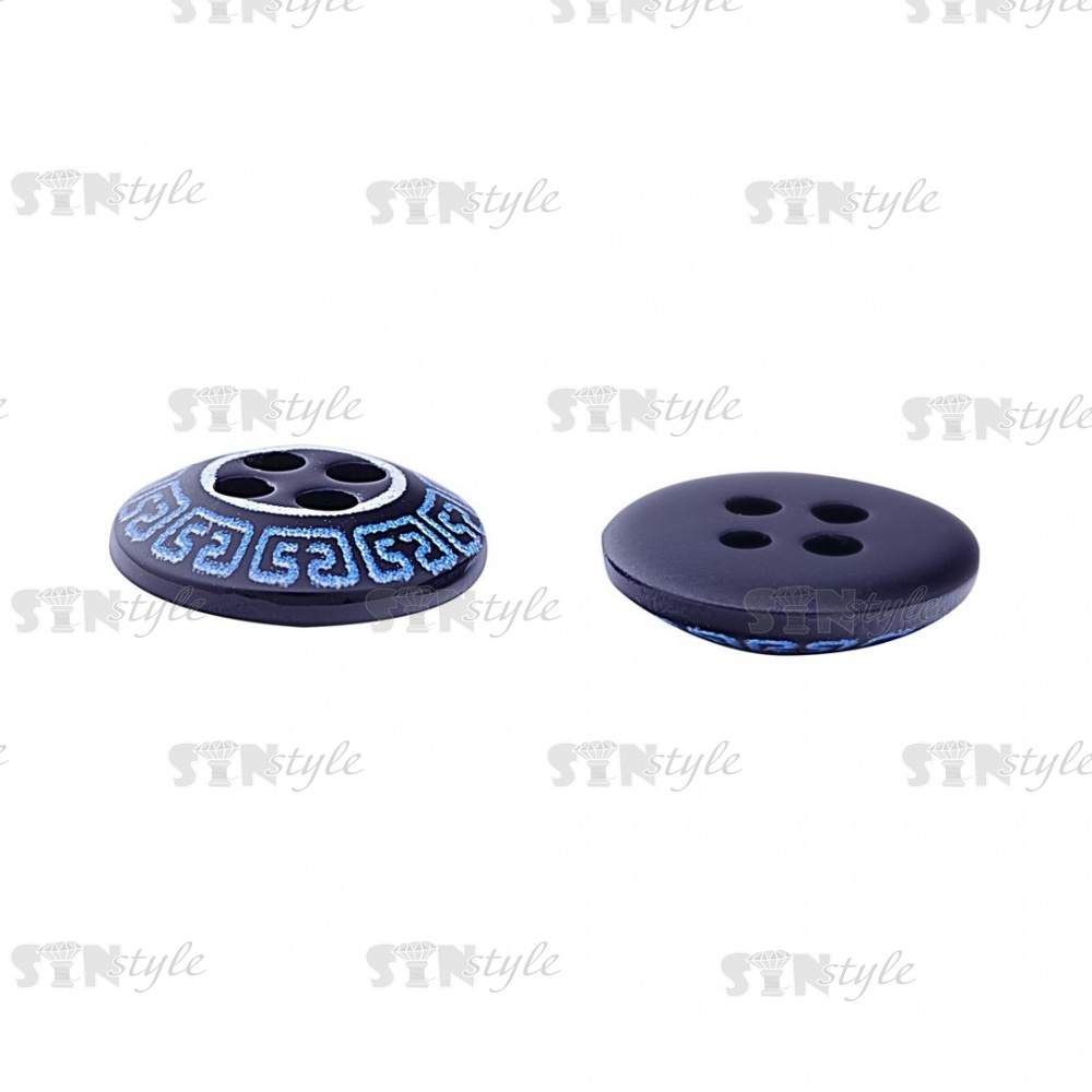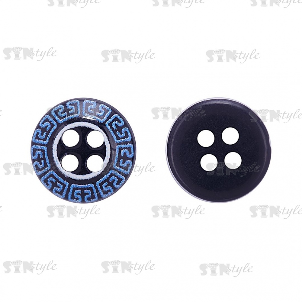 Пуговица пластиковая на четыре прокола, размер 18L, цвет черный/синий