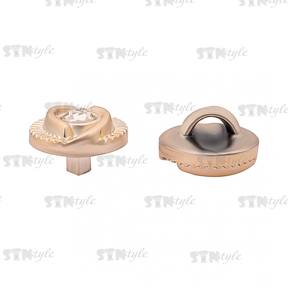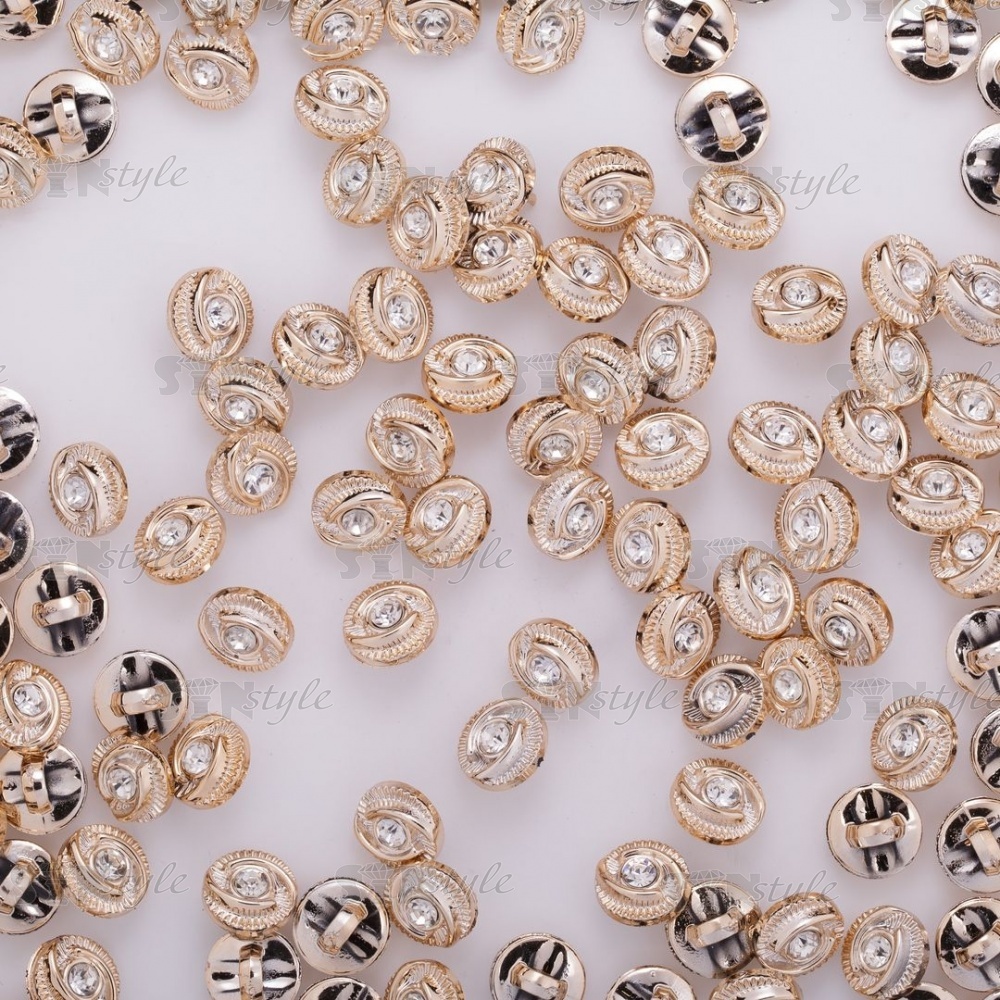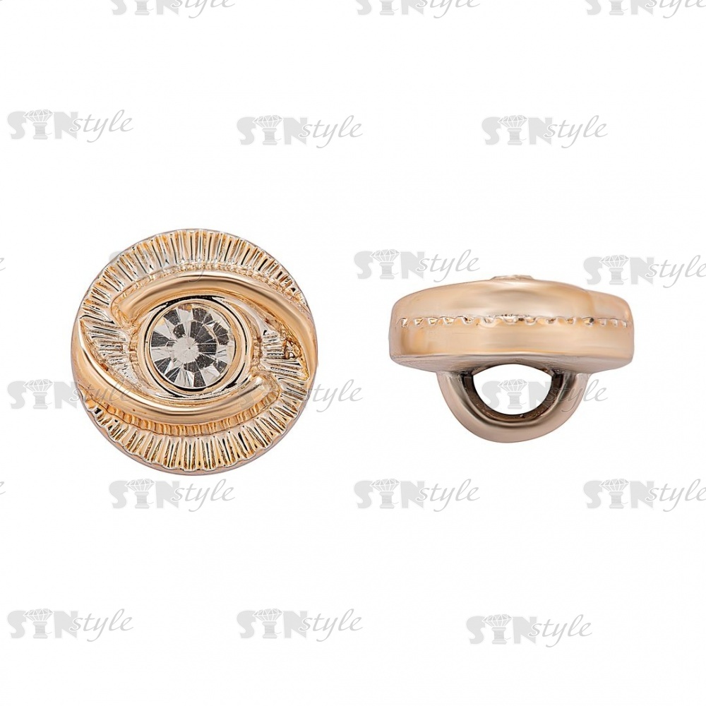 Пуговица пластиковая на ножке, круглой формы, цвет золотой, белая страза в центре, размер 18L