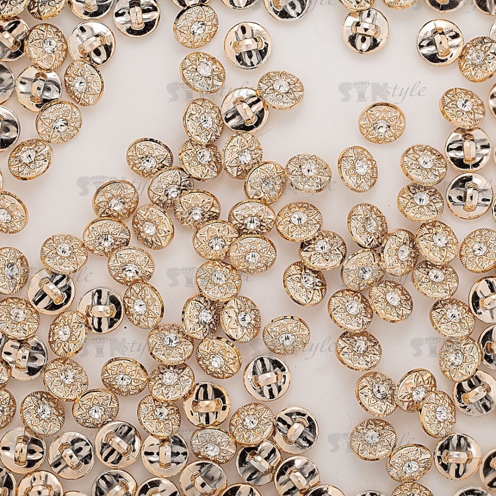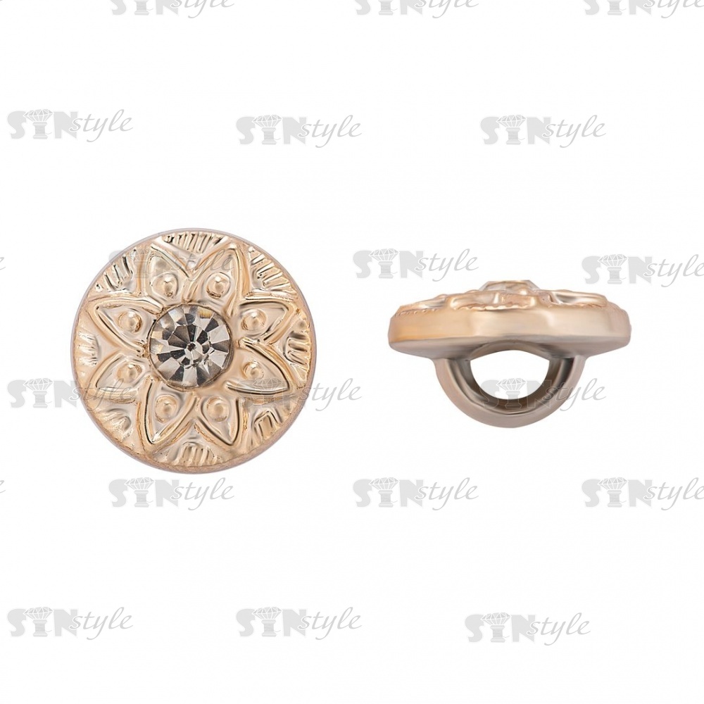 Пуговица пластиковая на ножке, круглая, цвет золотой, белая страза в центре, размер 18L