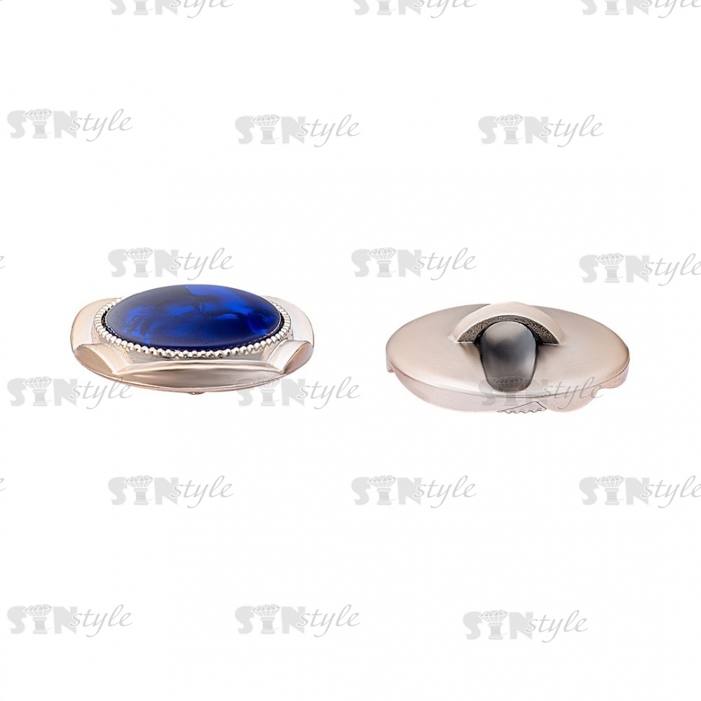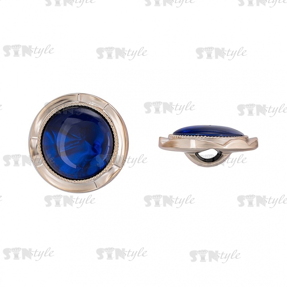 Пуговица пластиковая на ножке, круглая, золотая основа, синяя вставка под мрамор, размер 40L