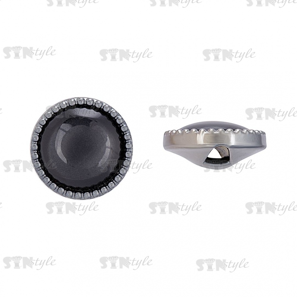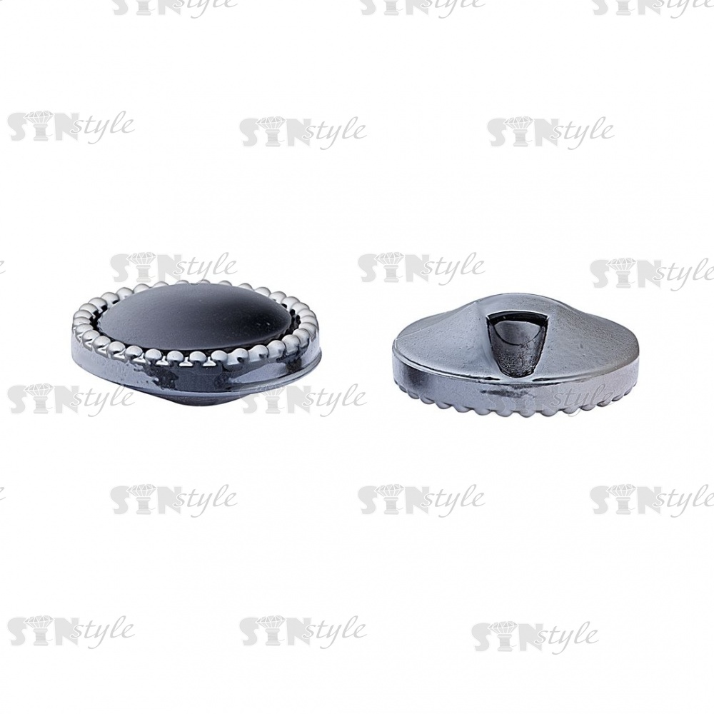 Пуговица пластиковая на полуножке, размер 28L, основа темный никель, шляпка черная