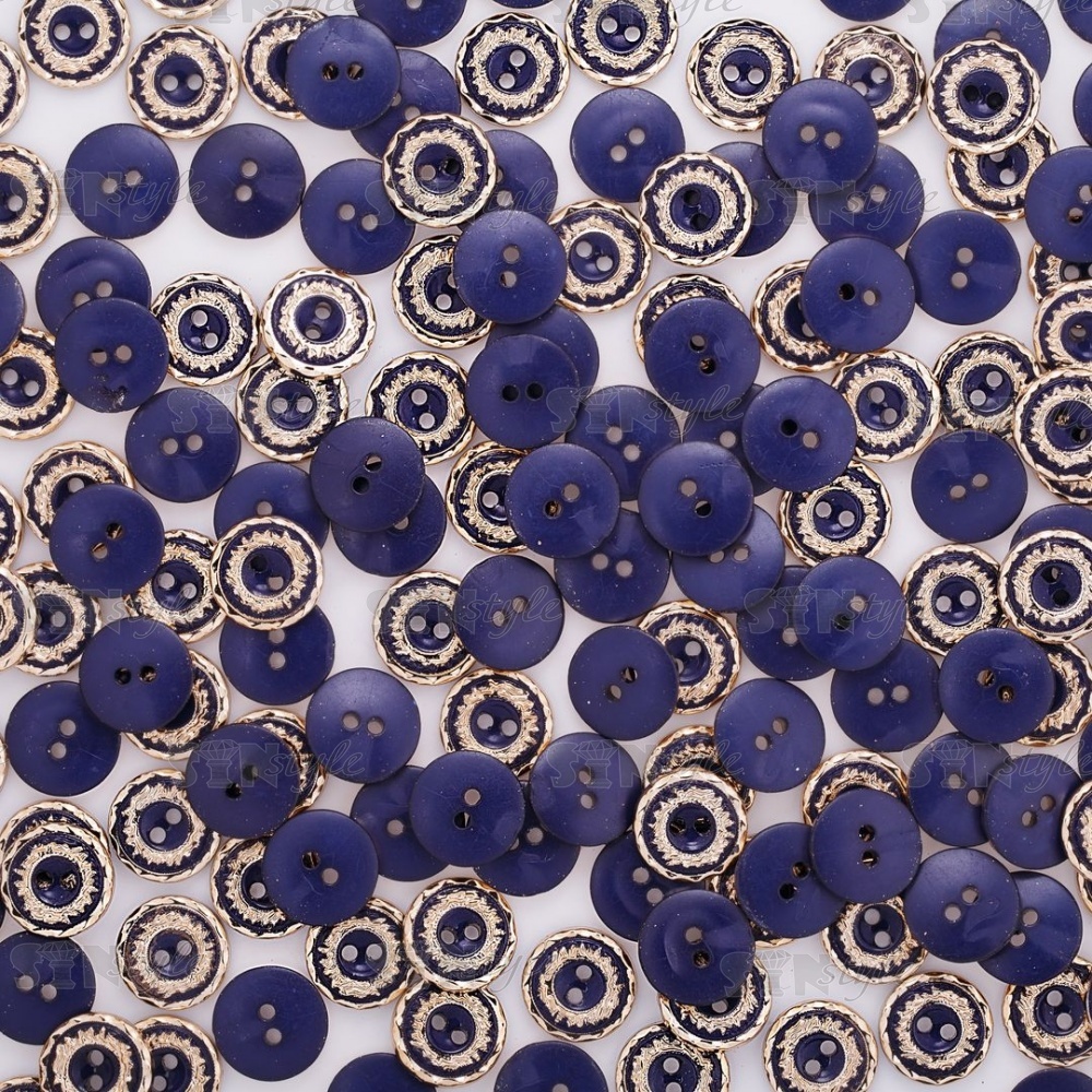 Пуговица пластиковая на два прокола, размер 20L, цвет золотой/темно-синий