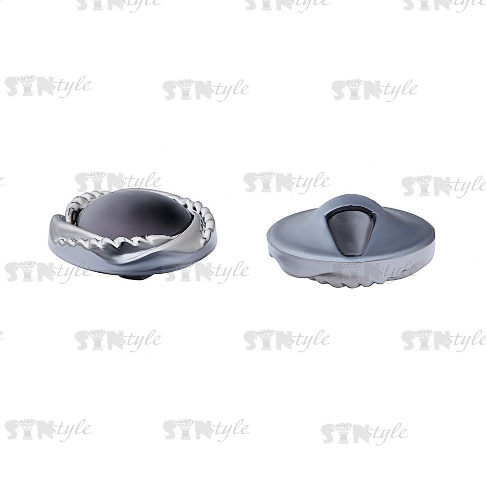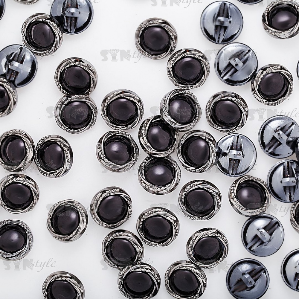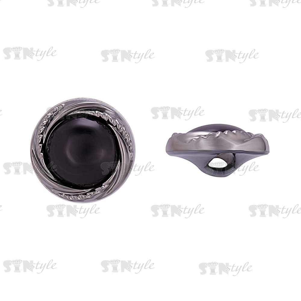 Пуговица пластиковая на ножке, круглой формы, цвета темный никель с черной вставкой в форме полусферы, 48L