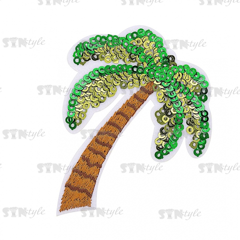 Термоаппликация "Пальма" с пайетками, размер 95х70 мм