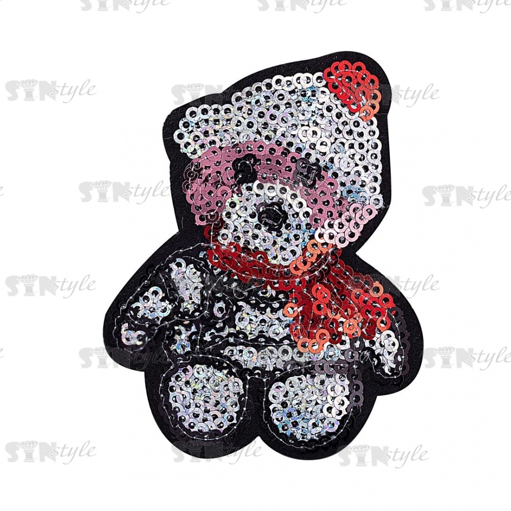 Термоаппликация "Мишка" с пайетками, размер 60х75 мм